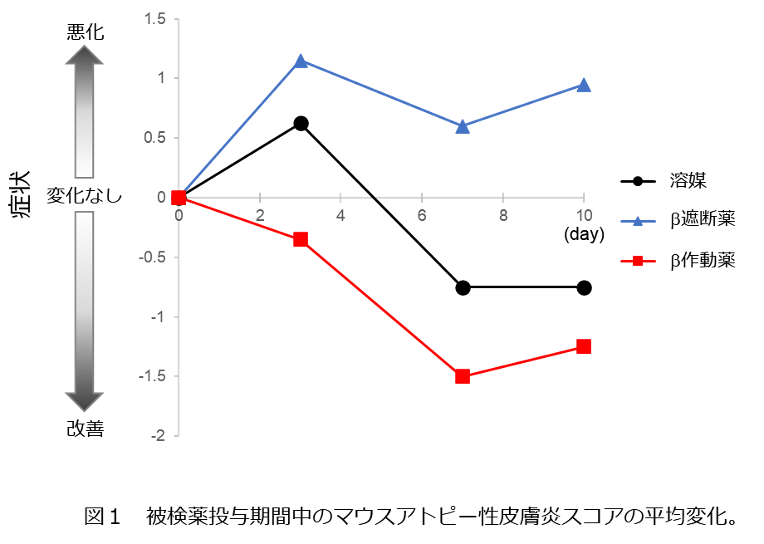作動薬(アゴニスト)が治療効果を示すことを立証し、更にアドレナリン類似骨格を持つ分子構造が、アトピー性皮膚炎の治療薬候補になり得ることを究明しました。