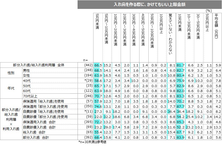 「保険適用の部分入れ歯」で79%が「5万円未満」