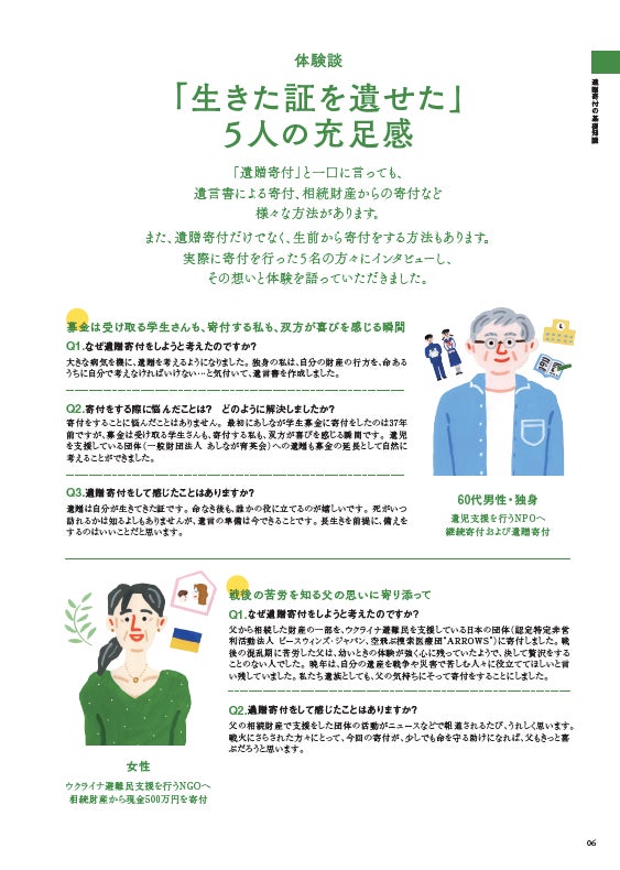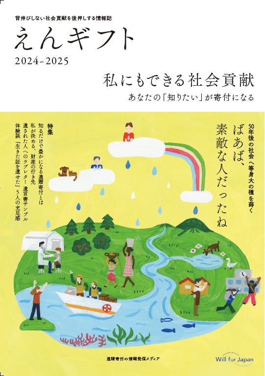 日本承継寄付協会(Will for Japan)は、今を生きる人々の意志を、次の世代に繋げることを目指しています。遺言は、自分のかけがえのないものと向き合い、自分の意志を未来へ繋ぐことができるライフステージアクションですが、死を連想し忌避されるイメージから日本人の10%しか書いていません。遺言は英語で「Will」といい、その言葉から与えるイメージは真逆のものです。当協会では、遺言にまつわるイメージを払拭するとともに、意志を未来へ繋ぐための「Will」 として活用されるために、誰もが負担なく想いをかたちにできる「遺贈寄付」の理解と普及を推進する取り組みとして、遺贈寄付の専門雑誌「えんギフト」の発行や、専門家の育成、遺言書作成への助成金の提供を行っています。