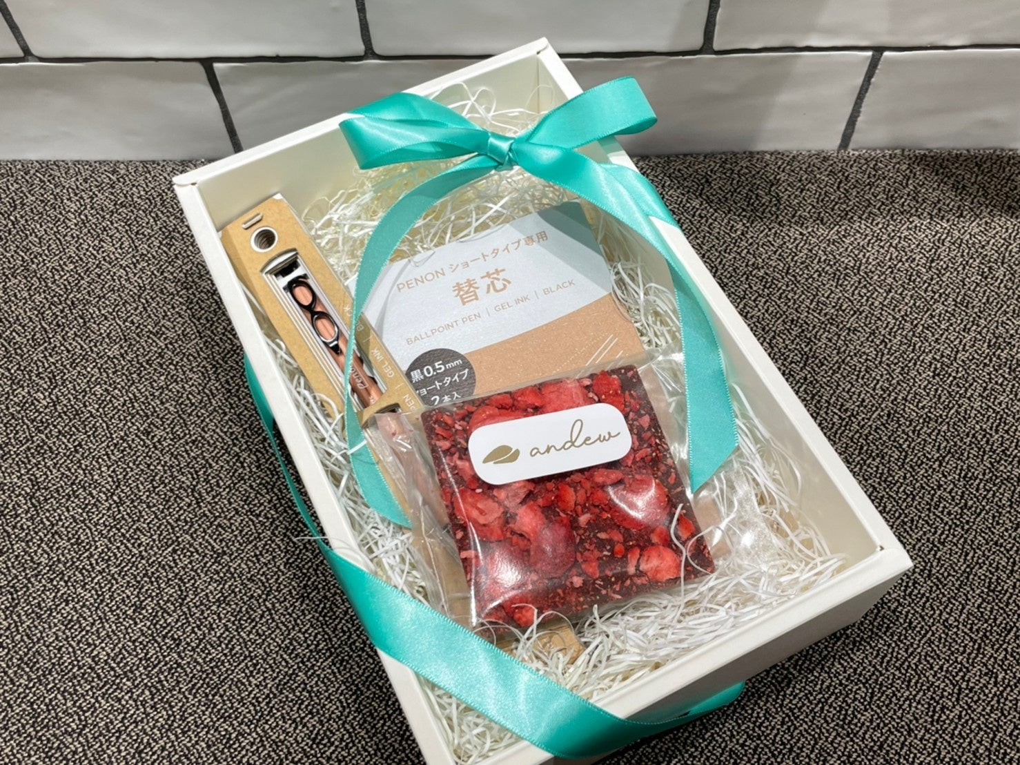 エシカルな暮らしで一番人気のギフトセット。完全食のチョコレートと使いやすい環境配慮型のボールペン・替え芯がセットになって、手軽にエシカルな暮らしを始めることができます。