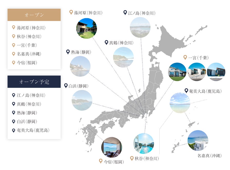 さらに2024年9月に江の島(神奈川県)、フラッグシップの真鶴(神奈川県)がオープン予定となっております。