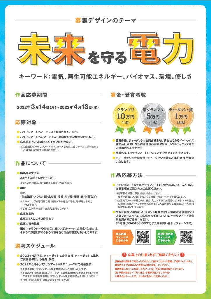 「未来を守る電力」をテーマにした障がい者アーティストによるパラリンアートデザインコンぺ開催のお知らせ