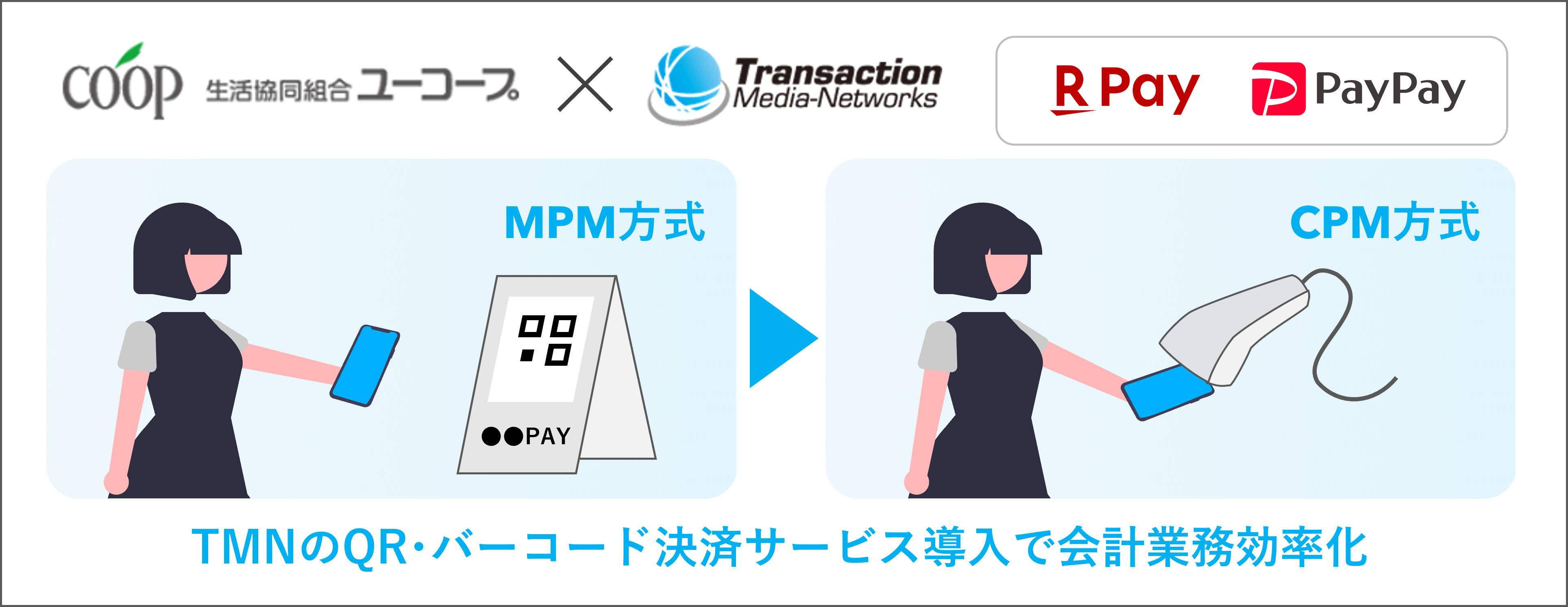 スマホ決済拡大に向け生活協同組合ユーコープがTMNのサービスを利用し「楽天ペイ」「PayPay」を導入