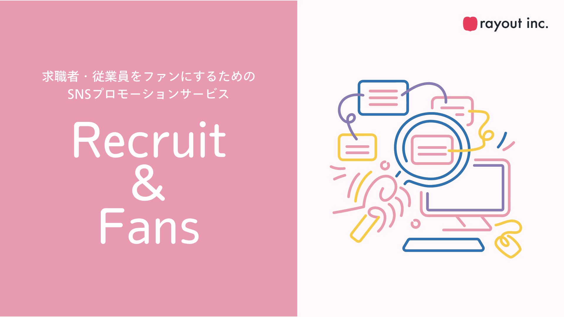 rayoutでは、求職者や社員を自社のファンにする為のSNSプロモーションサービス「Recruit & Fans」の提供も行っております。