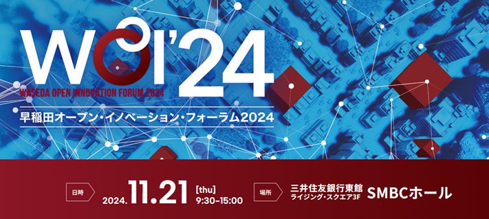 学校法人早稲田大学(東京都新宿区、理事長:田中愛治、以下早稲田大学)は、強みである総合知を紹介するとともに、産学連携・人材育成・知財創出・ベンチャー育成を統合的に推進し、社会へ還元していくことを目的として、早稲田オープン・イノベーション・フォーラム2024(WOI’24)を2024年11月21日(木)に対面イベントとして開催します。