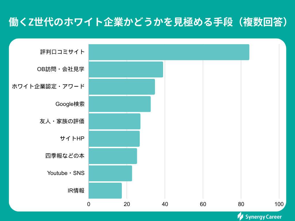 ・Z世代がホワイト企業かを見極めるための手段は「評判・口コミサイト」「OB訪問・会社見学」「ホワイト企業認定/アワード」