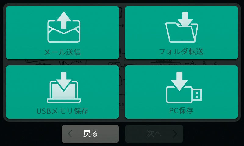 本製品は会議の議論の保存・共有がスムーズにできます。LANに接続することで、板面のスキャンデータをすばやくメールで送信したり、ファイルサーバに転送したりすることが可能。また、本体に接続したUSBメモリやパソコンにも保存でき、フレキシブルなデータ出力に対応しています。