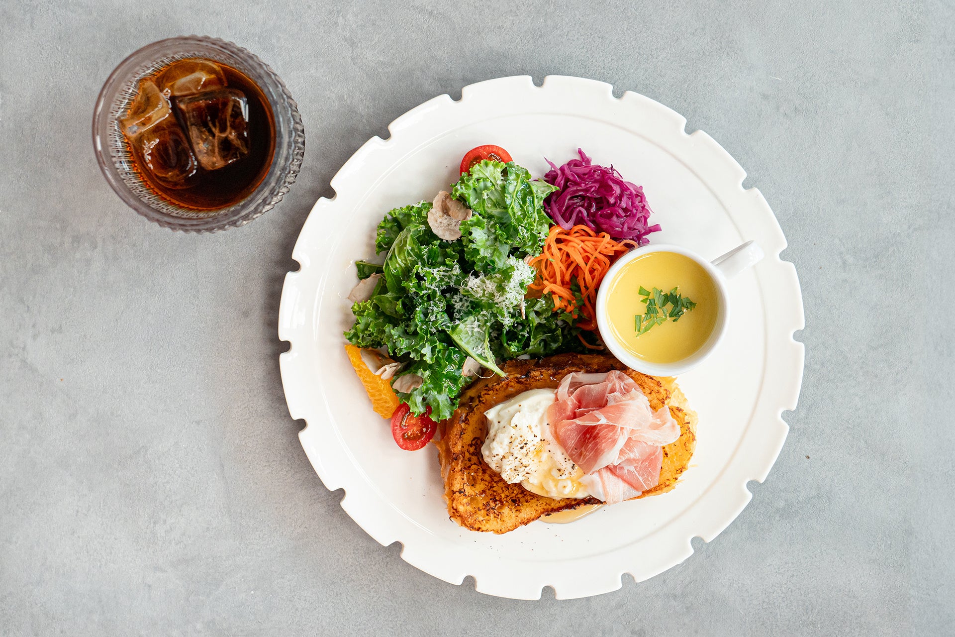 ランチは気軽にお食事が楽しめるカフェプレートに変わります。香ばしく焼き上げたトーストにホワイトソースやベーコン、半熟の目玉焼きをのせた「クロックマダム」や、クリーミーなアボカドとポーチドエッグをトーストにのせデュカで仕上げた「アボカド&エッグ」など5つのプレートを展開。