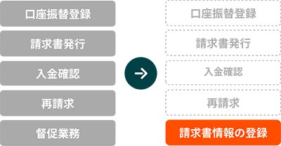 「100%立替保証」「請求業務代行」「柔軟性の高いサービス」を提供し、口座振替に関する現場の負担を軽減します。