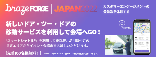 FORGE Japan 2022事前登録者は、オンデマンドシャトルサービス「スマートシャトル®︎」の予約を行うことができます。皆様のお越しをお待ちしております。