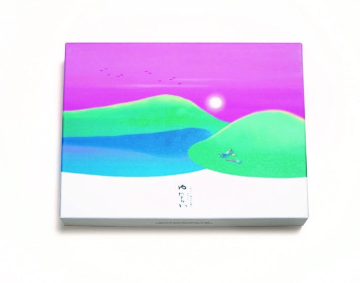 今回のパッケージでは、少年シゲルのとある1日を懐かしさを込めて描いていただきました。いえだゆきなさんの特徴はちょっと幻想的な色使い、日本画出身のいえださんならではのやわらかな筆使いと、非現実的な色合いがあいまって夢の中のような不思議な世界を描き出しています。この夏のごあいさつに、帰省土産に大変おすすめです。