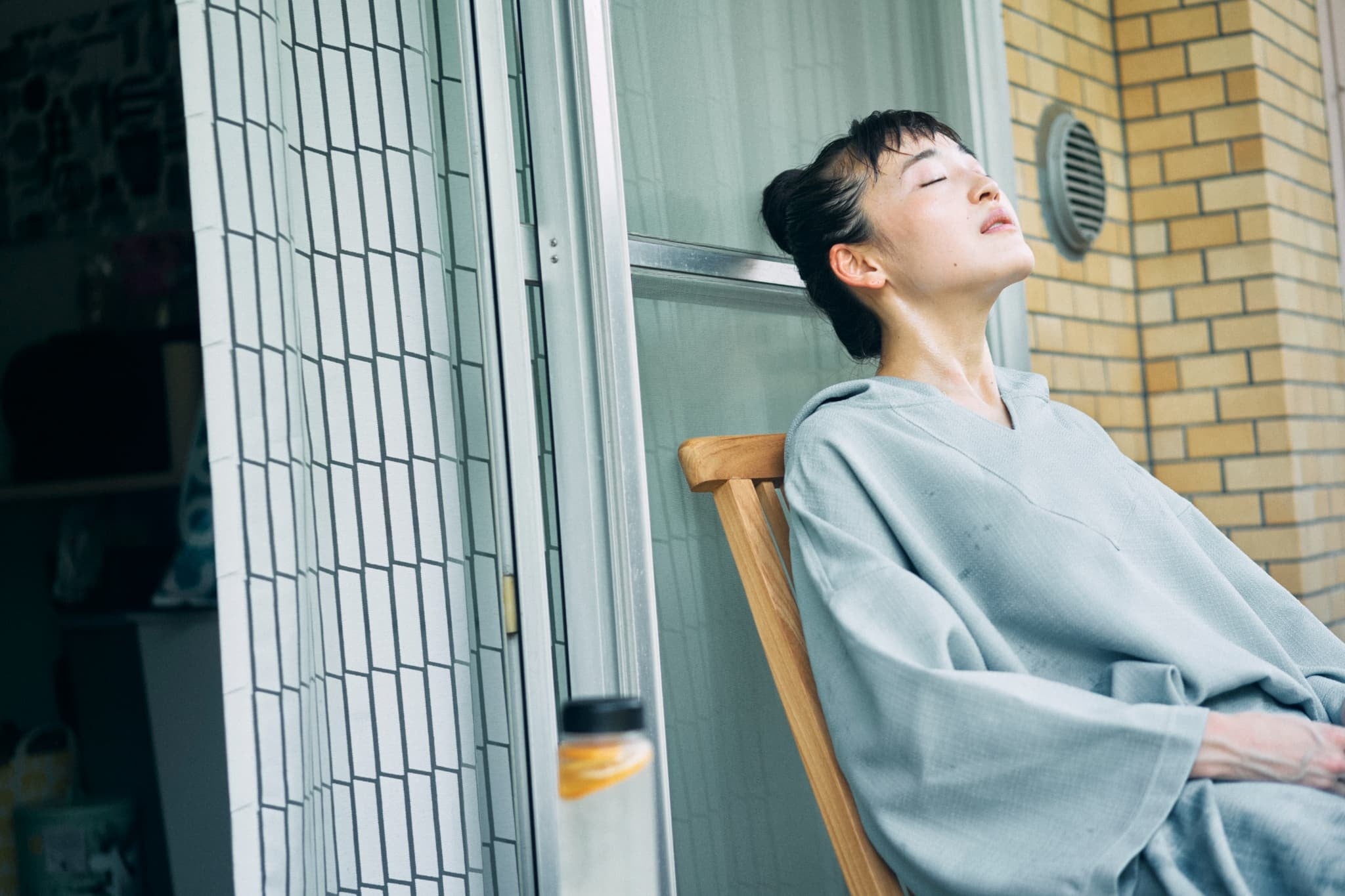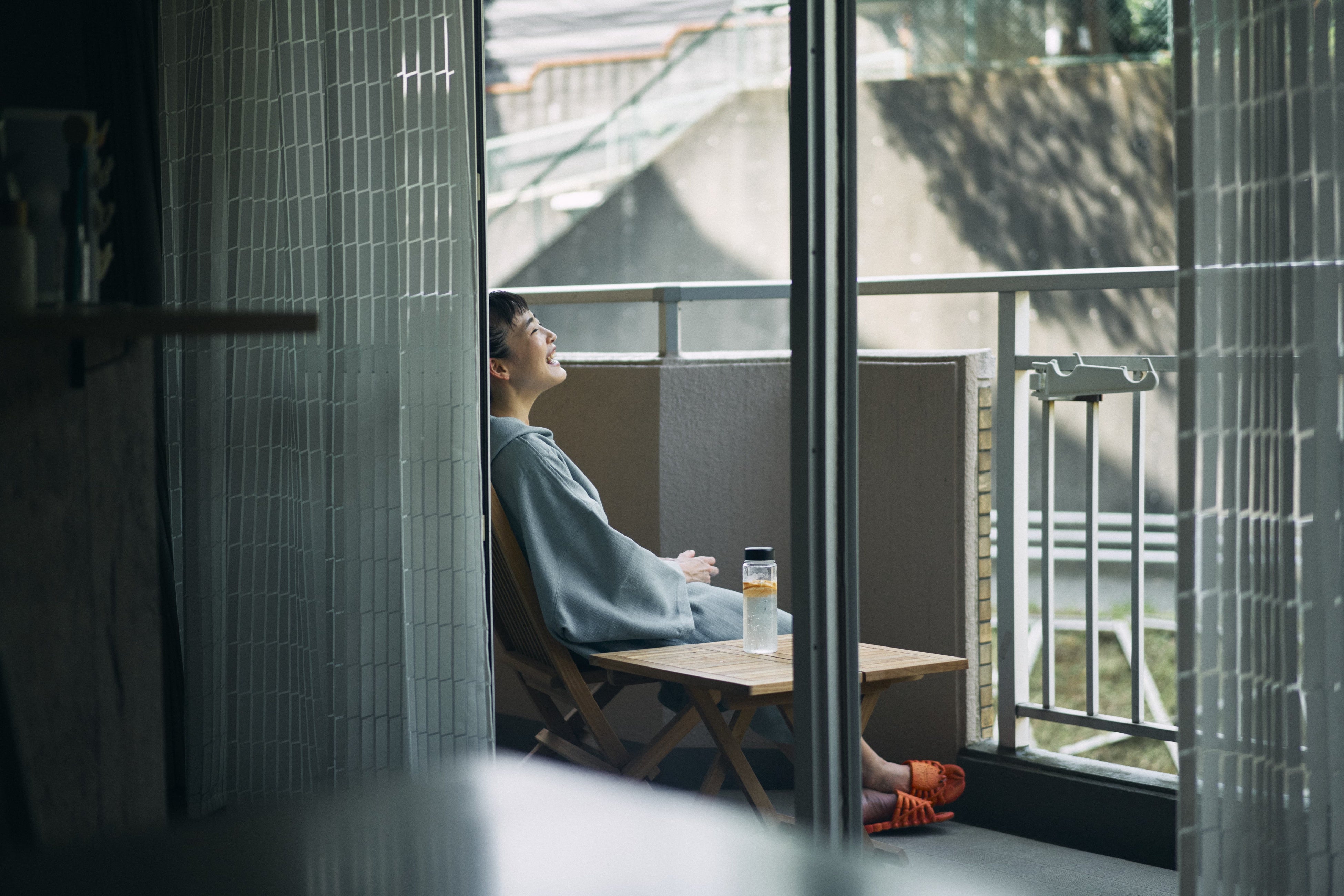 水風呂やシャワーを浴びたら、ベランダで外気浴。水分補給も欠かせません。野菜やフルーツ、ハーブなどを水に浸すだけで簡単に作れてしまうデトックスウォーターは、サウナのお供にも◎