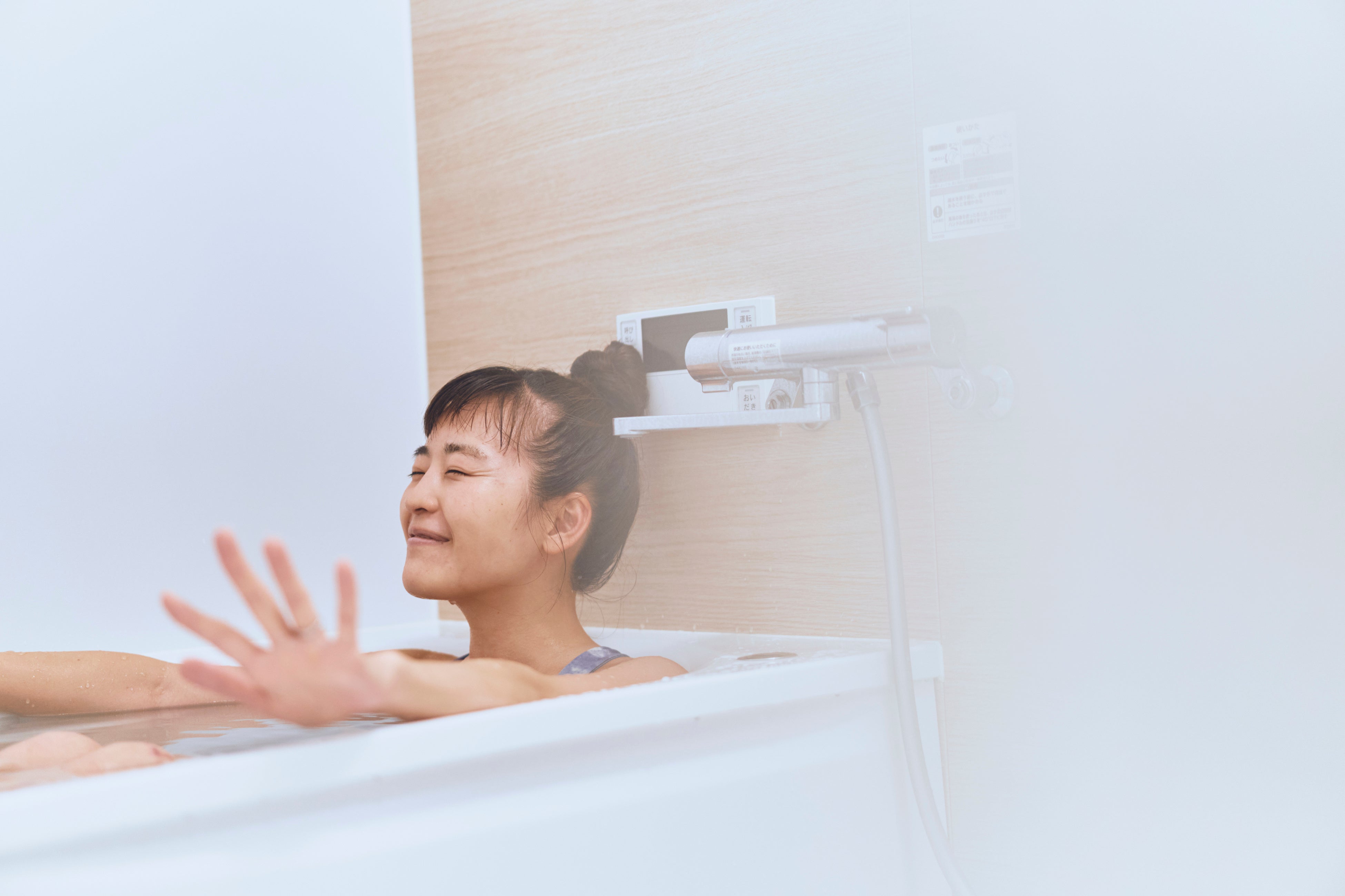 今回はtotonoüのサウナを実際に導入いただいたお客様のご自宅にお邪魔し、撮影を実施しました。モデルには、自他共に認めるサウナ好きで、ご自宅にもサウナがあるという俳優・タレントの清水みさとさんをお招きし、「サウナと共にある暮らし」を再現していただきました。
