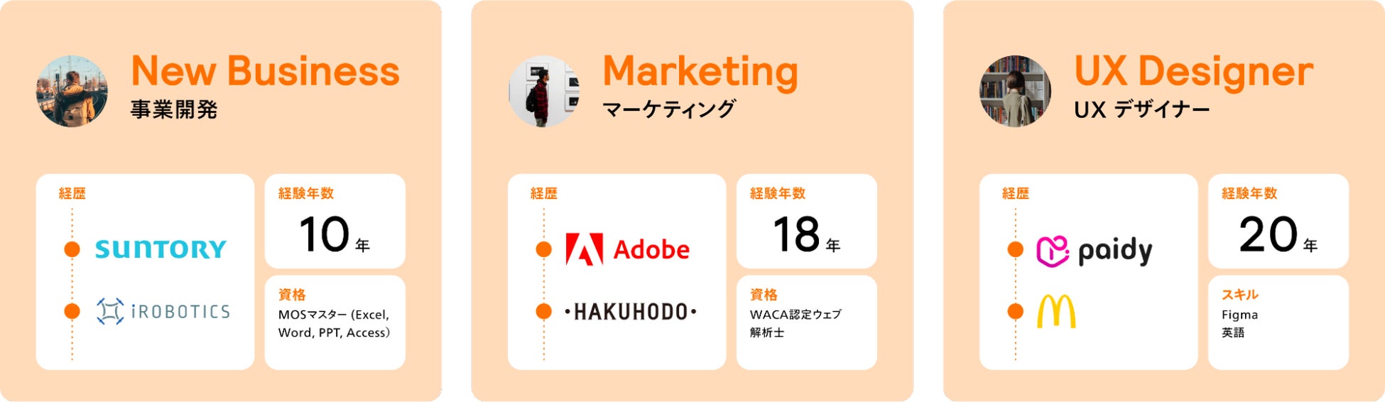 企業向けには、初期費用のみでプロ人材とマッチングし、人材の質に満足いただけたら残りをお支払いいただく、新しい採用モデル「MATCH NOW PAY LATER™」(フリーランス採用版のBNPL(後払い決済))を提供しています。