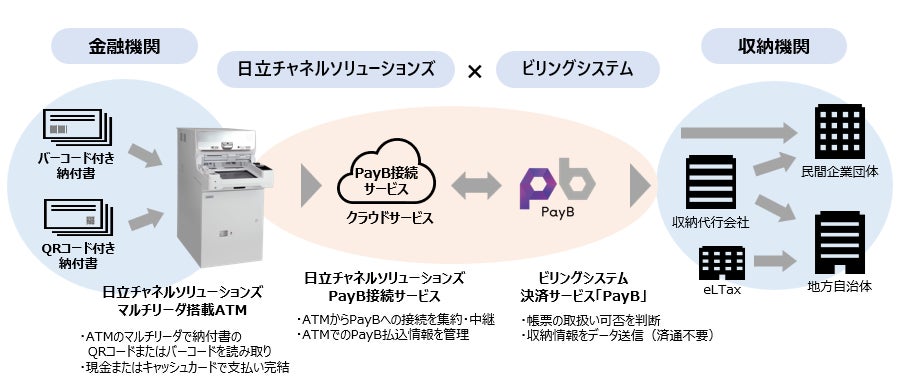 これにあわせて、日立チャネルソリューションズは、「ATM PayB」の導入を容易にするクラウドサービス「PayB接続サービス」の提供を開始しました。