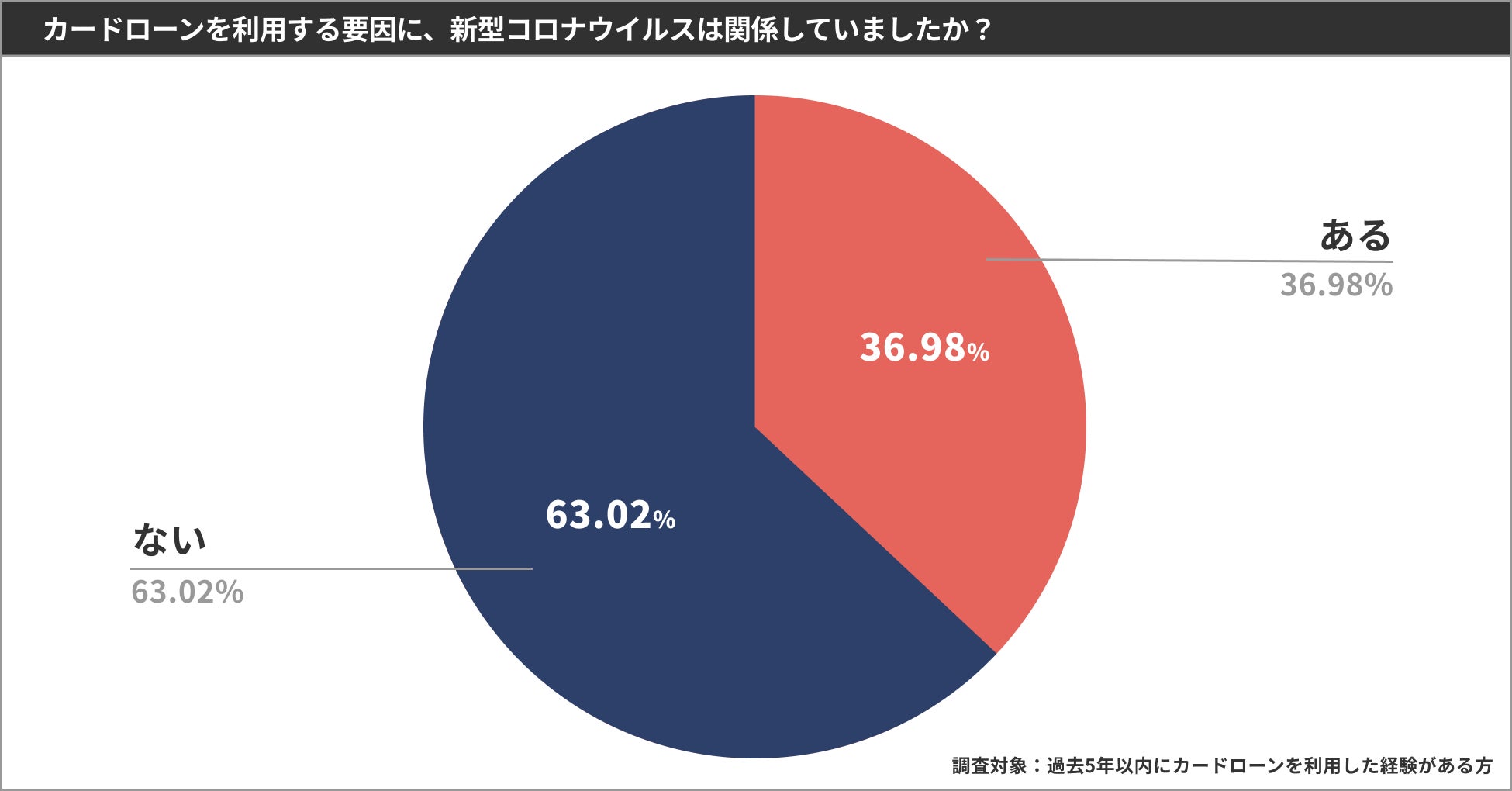 「コロナ禍の影響でカードローンを利用した」と答える人は36.98%となっており、3人に1人以上が該当するという結果になりました。