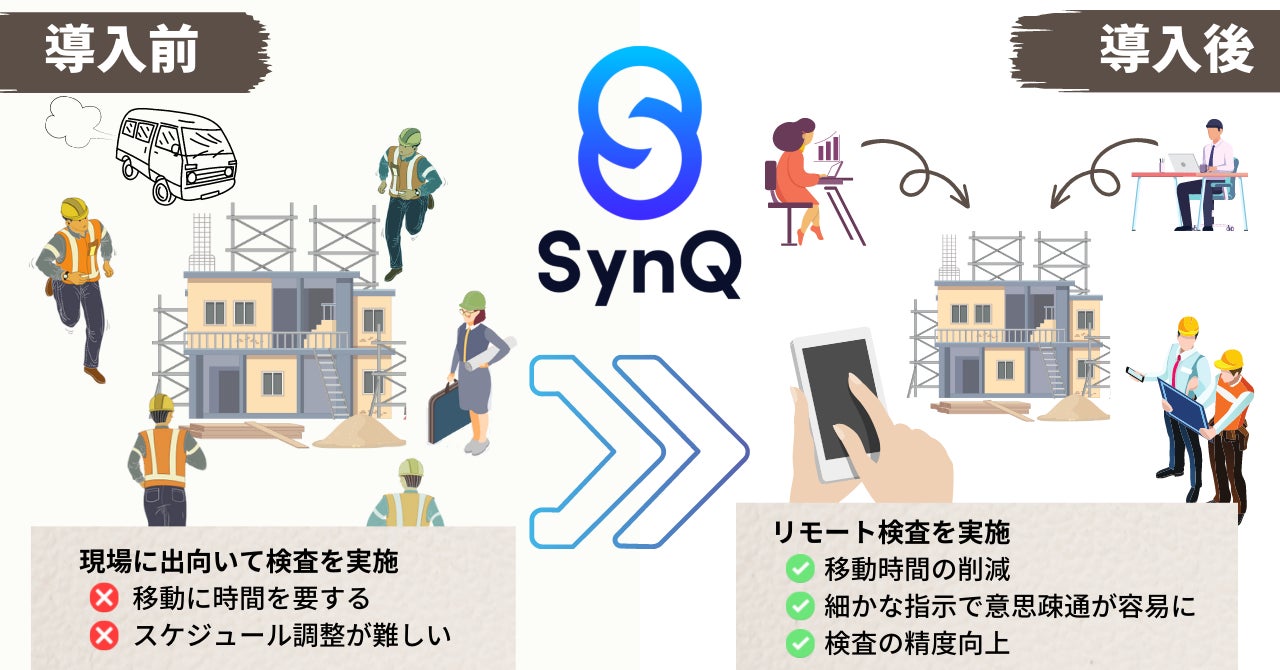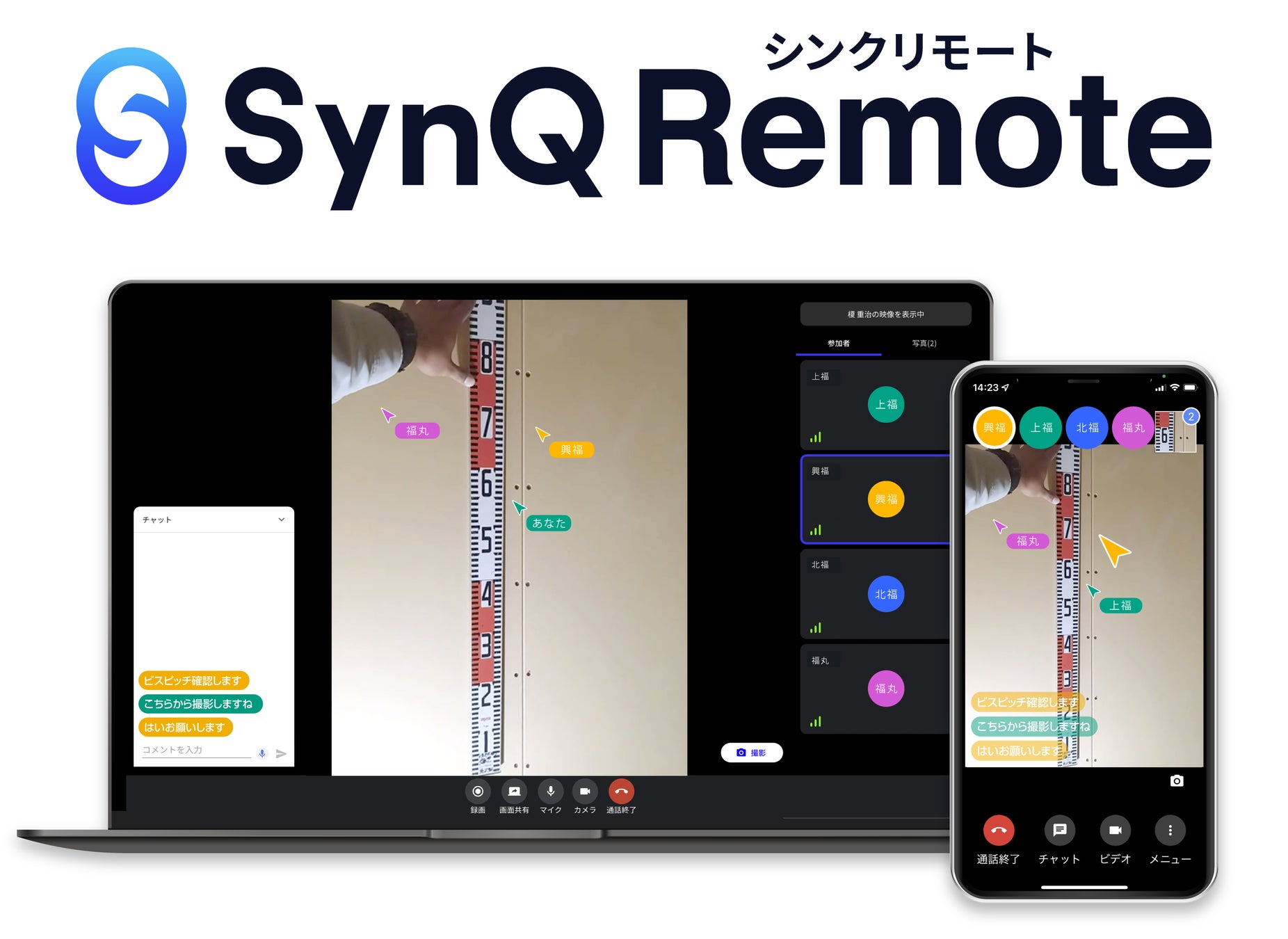 SynQ Remote(シンクリモート)は、現場の「あれ、これ、それ」が伝わる遠隔支援・ナレッジ共有ツールで、人手不足・技術者不足、技術承継、労働集約型からの脱却といった幅広く「現場」と名の付く場所に共通する課題を解決するプロダクトです。手持ちのスマートフォンやPCにアプリをインストールするだけで使い始めることができます。