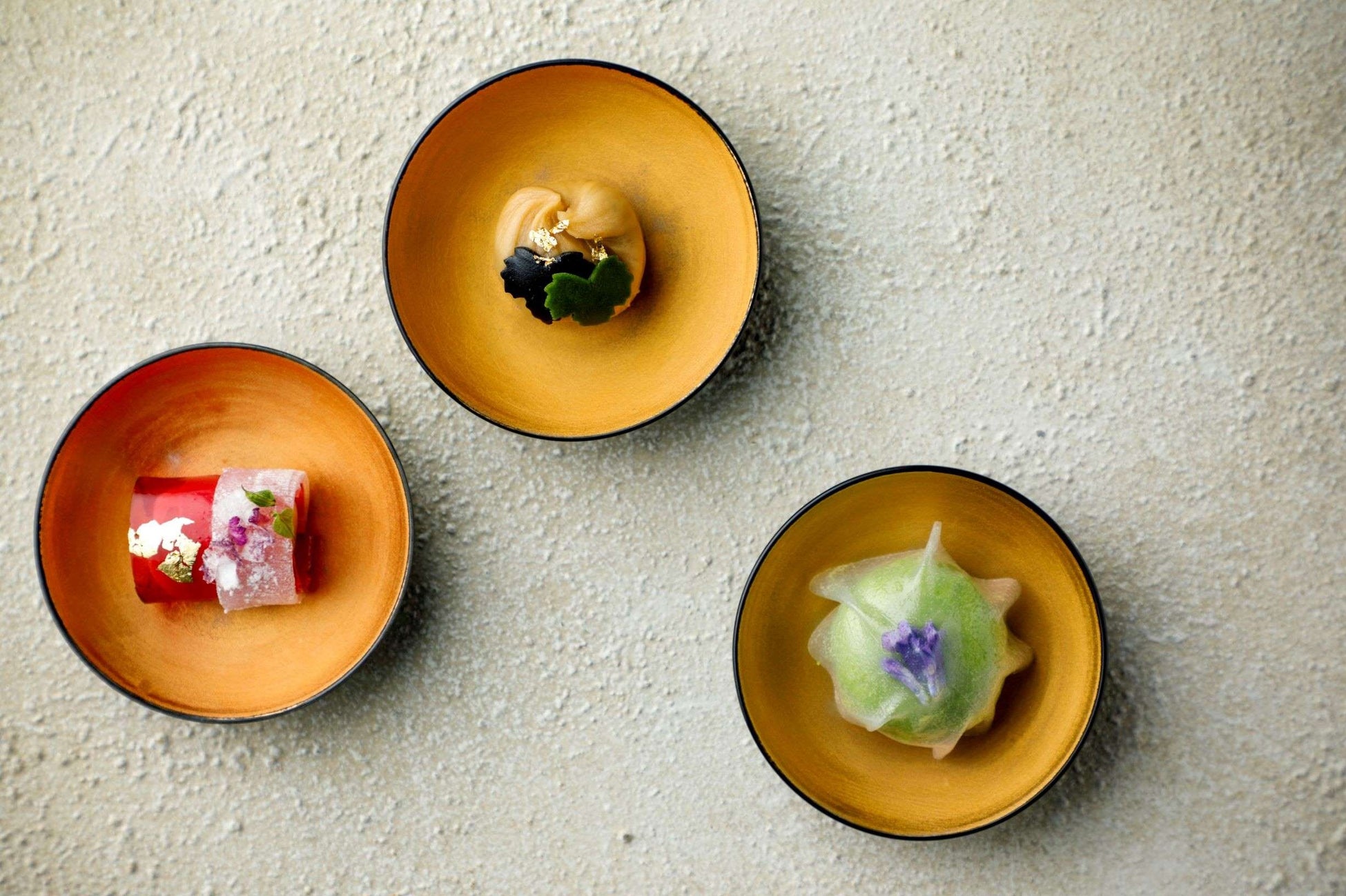 受け継がれる琳派のクリエイティビティにオマージュを捧げ、2段のお重に並ぶアフタヌーンティーのうち、スイーツ2品、セイボリー1品に琳派のエッセンスを取り入れました。きらめく青もみじに包まれる森の庭で芸術に想いを馳せながら、アマン京都が創り出す、琳派の世界をお楽しみください。