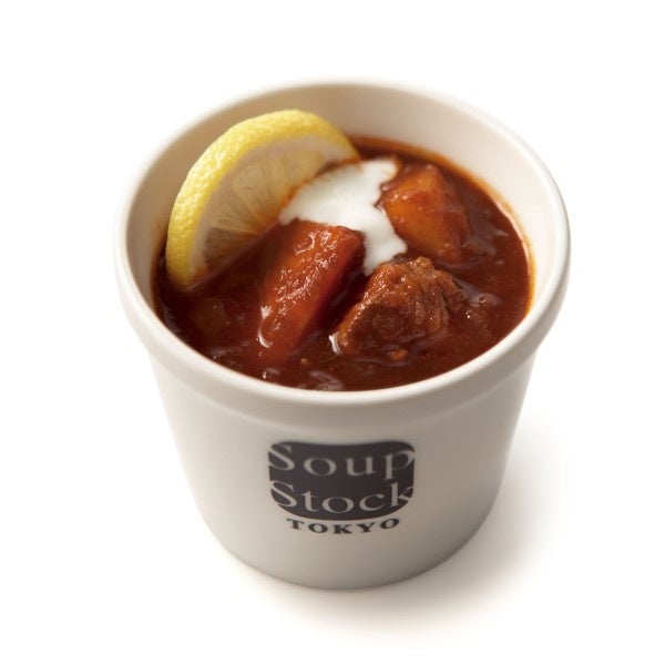 かぼちゃと豆乳をベースに、6種のごろっとした野菜とチキンが入った、食べ応えのあるシチューです。