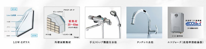 省エネ性と断熱性向上のため、「LOW-Eガラス」をはじめ、「外壁面断熱材」、節水効果のある「手元ストップ機能付水栓」、「タッチレス水栓」、高効率型給湯器「エコジョーズ」を導入。入居者には快適な室内環境を、投資家には「次世代基準の物件」という長期的な安心感を提供します。