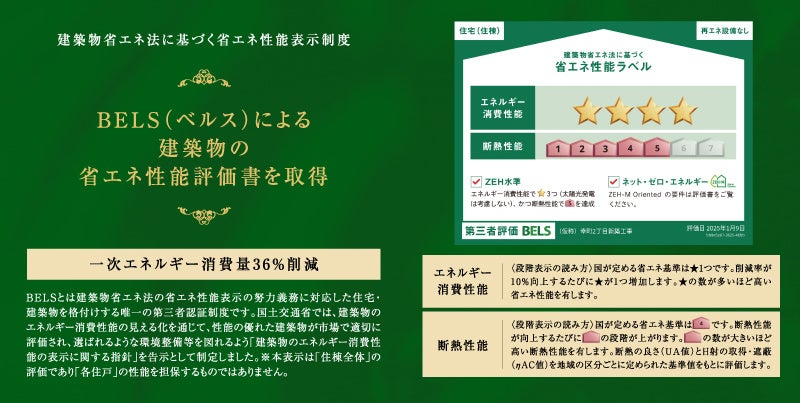 本物件は、高い断熱性能と高効率な設備システムにより、快適な室内環境を維持しながら、マンション全体の年間一次エネルギー消費量を20%以上削減することを目指す「ZEH-M Oriented」を取得しています。さらに、2027年4月から運用開始予定の、より高水準な省エネルギー住宅の新基準「GX-ZEH M Oriented」を見据えた設計を採用。共用部を含む住棟全体で一次エネルギー消費量36%削減を見込むなど、次世代の環境要件に準拠した極めて高い環境性能を実現しています。