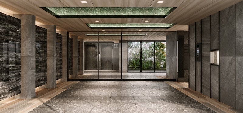 一際目を引く堂々としたファサードは意匠の異なる上質な素材を設え気品あふれる洗練のレジデンスを演出。エントランスは、質感の異なる素材のタイルが美しく彩り、優美な私邸への期待を高めます。