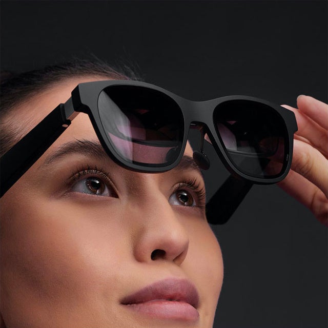 Nreal AirはNrealの革新的なスプリットデザインを踏襲し、サングラスのように、軽量(本体重量 約79g)で折りたたむとポケットにすっぽり収まるサイズになります。