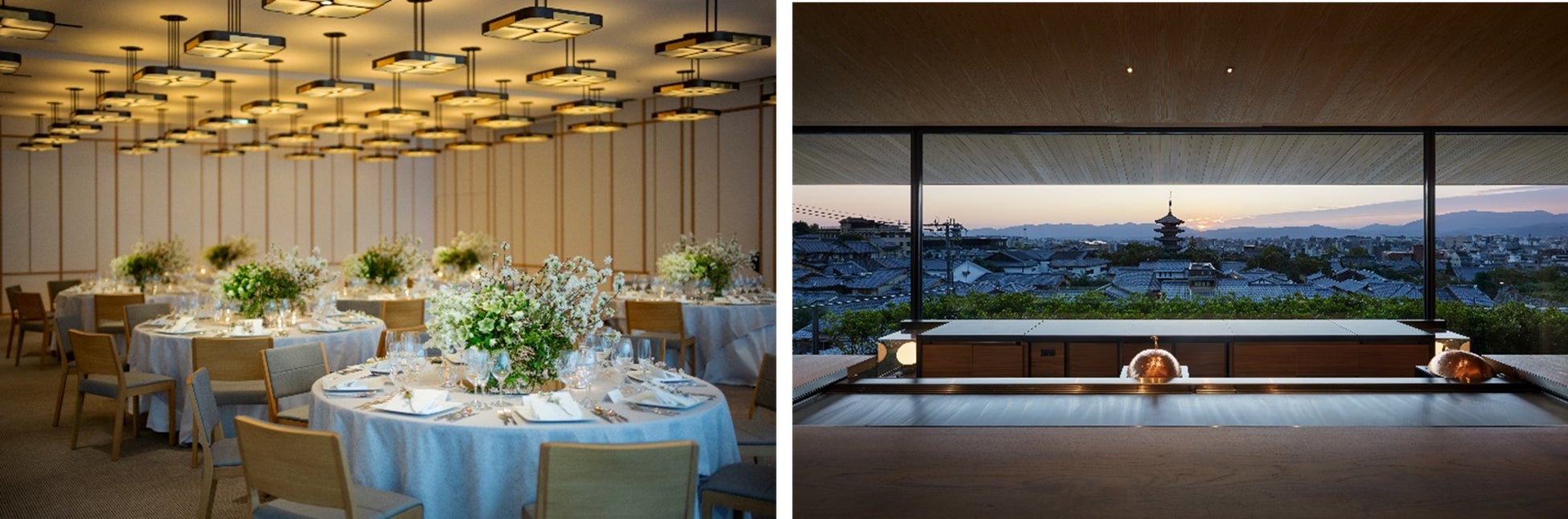 (右)記念日ディナーにご利用いただけるシグネチャーレストラン「八坂」
