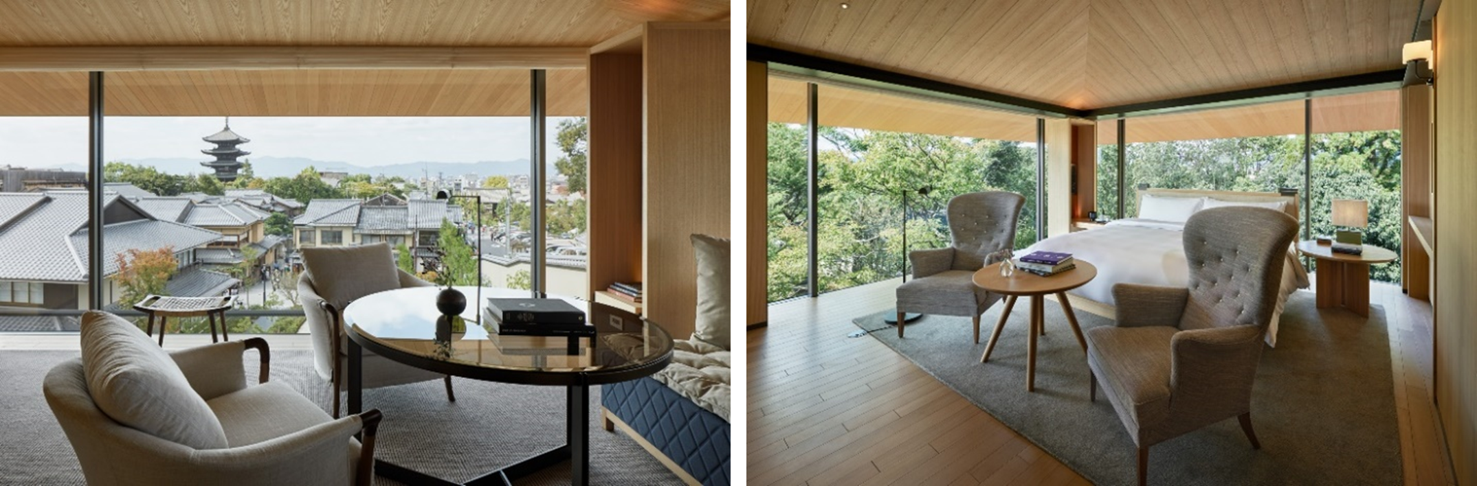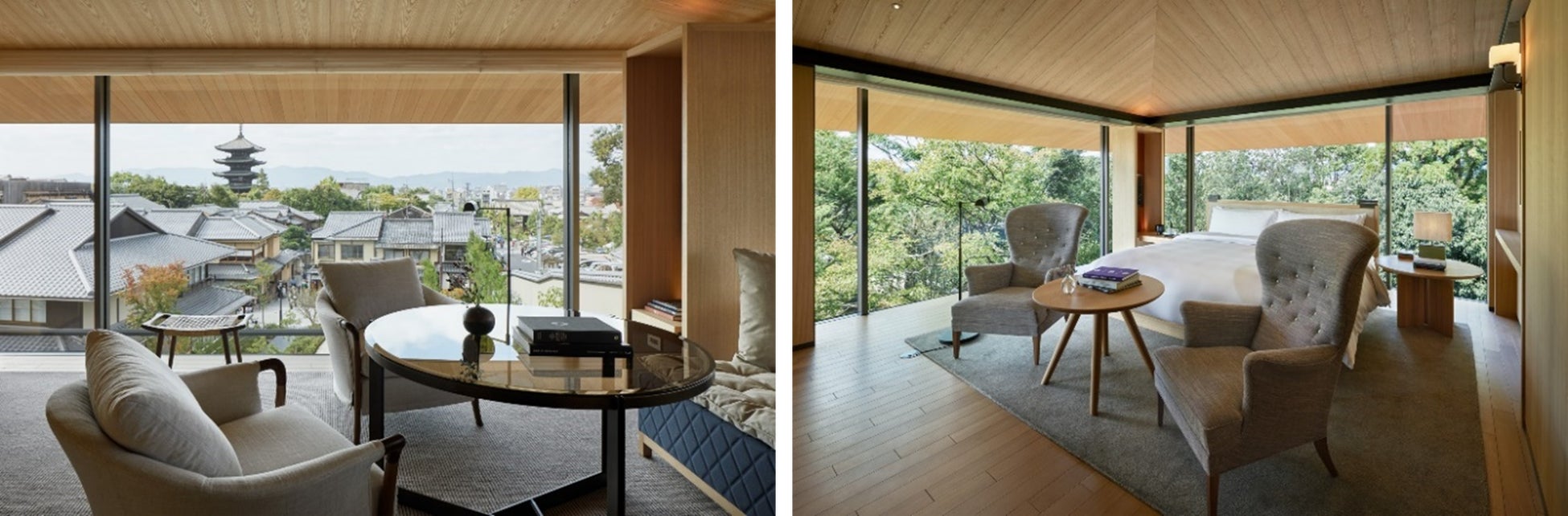 (右)悠久の歴史と豊かな文化、四季折々の美が息づく東山の中心に位置し、伝統的建築を活かしたホテルならではのフォトスポットも