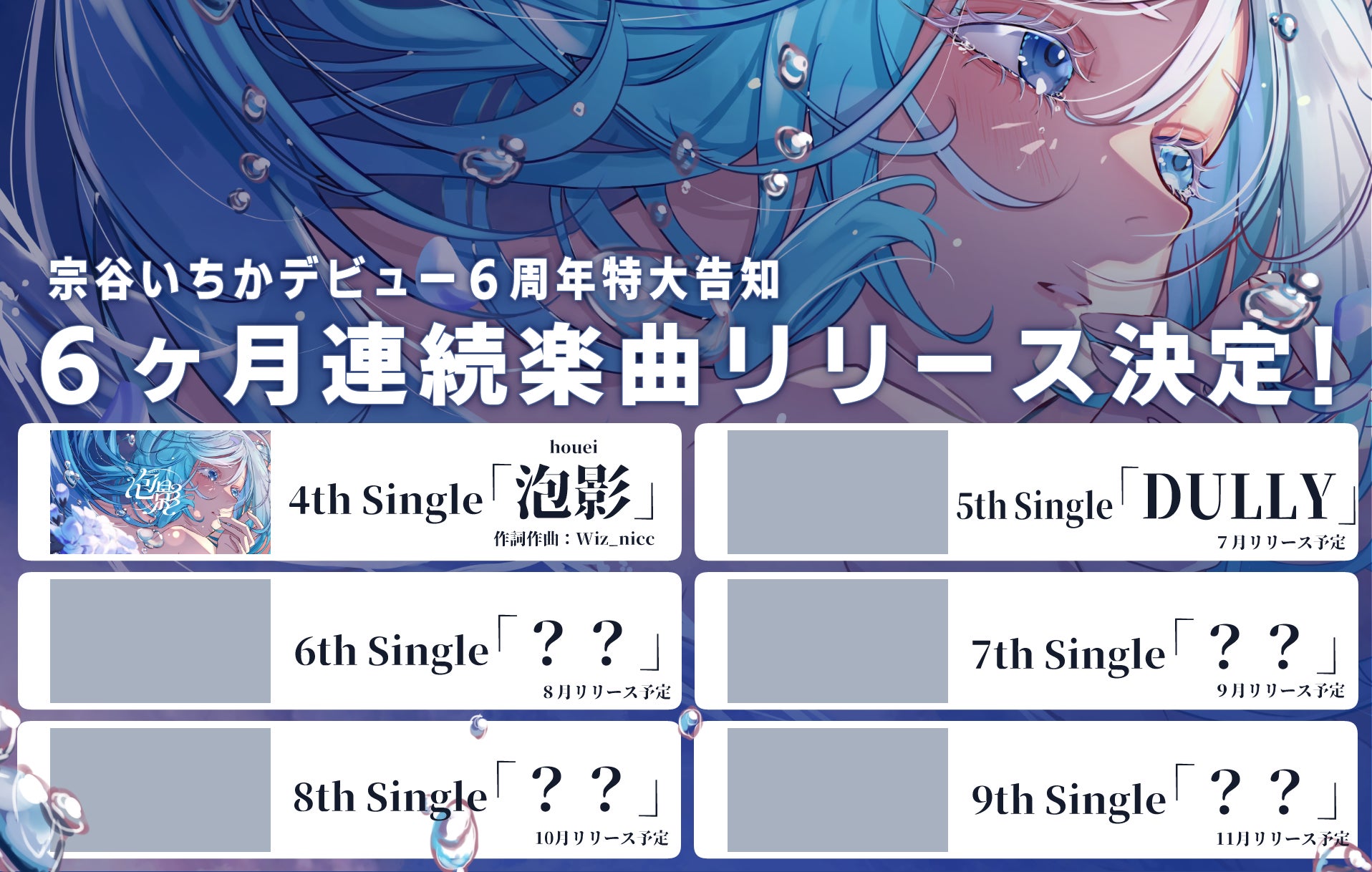 VTuber「宗谷いちか」6ヶ月連続デジタルリリース決定!!第一弾楽曲『泡影』が配信スタート!