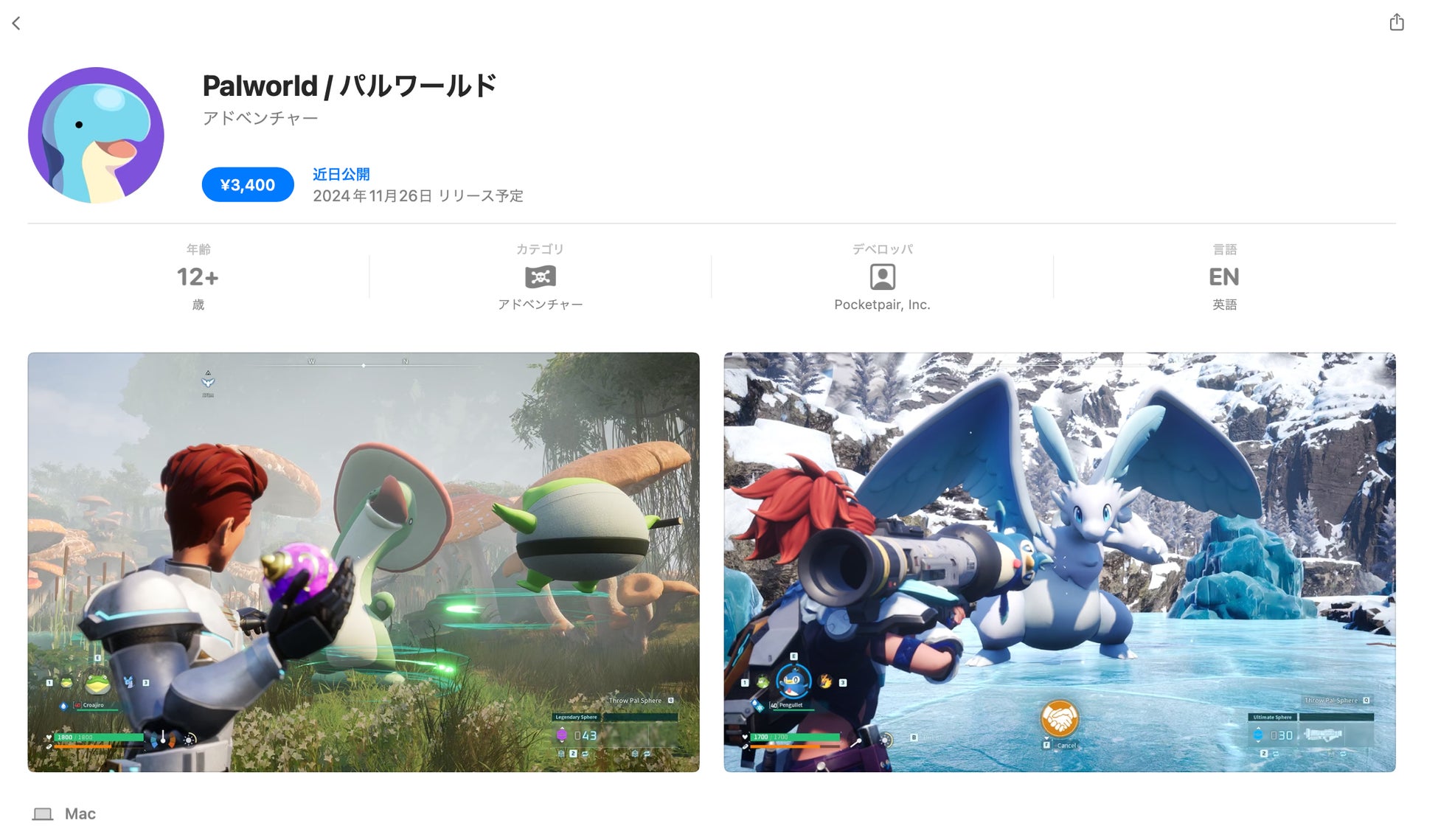 Mac版『Palworld / パルワールド』発売日変更のお知らせ