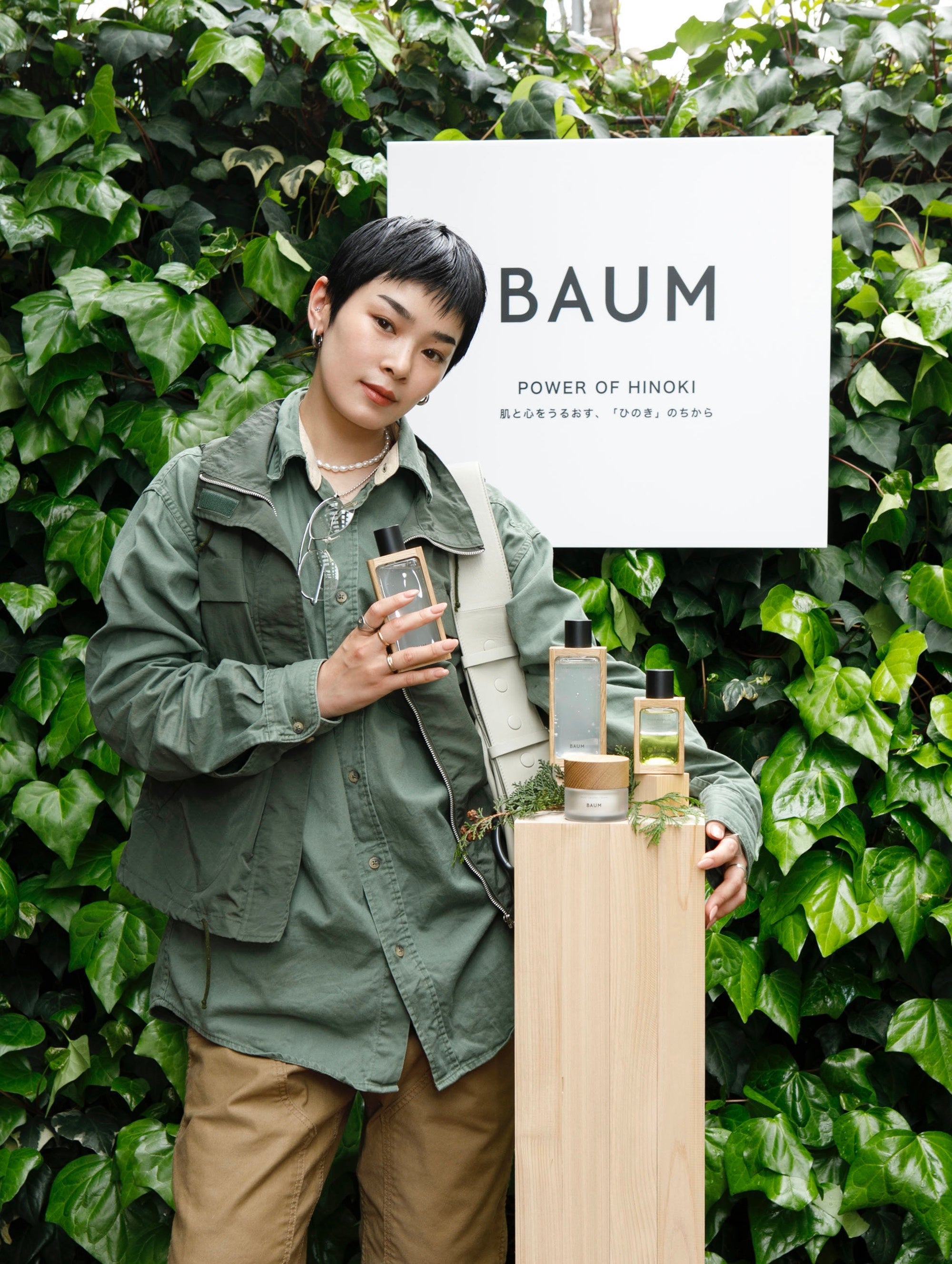 「樹木との共生」をテーマに掲げるスキン&マインドブランド「BAUM(バウム)」(製造販売元:(株)資生堂)は、2024年4月18日(木)に新たな樹木成分「ひのき水」を配合*しリニューアル発売する、ブランドを象徴するスキンケアライン5品に先駆け4月4日(木)、1日限りのイベント「POWER OF HINOKI 肌と心をうるおす、「ひのき」のちから」を公益社団法人 日本アロマ環境協会のアロマ体験施設「AEAJグリーンテラス」で開催いたしました。