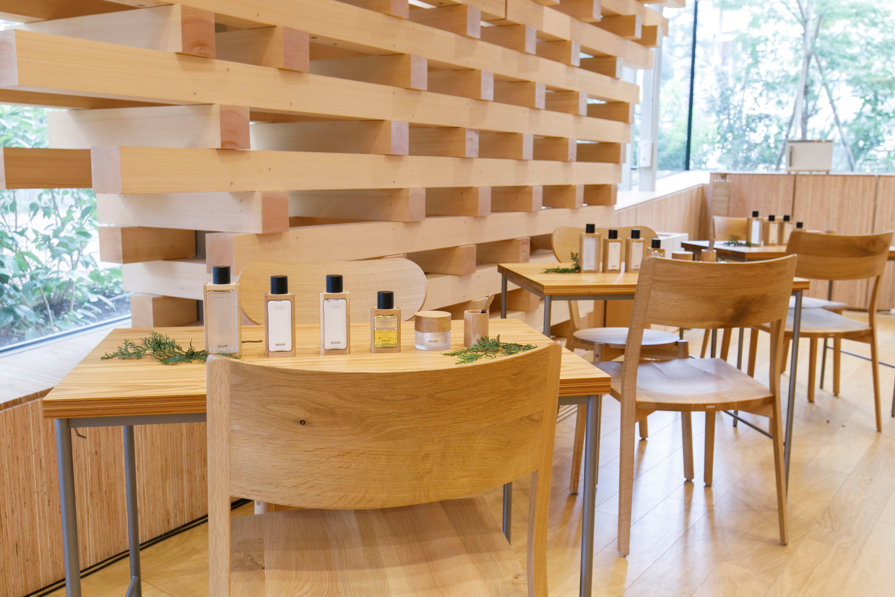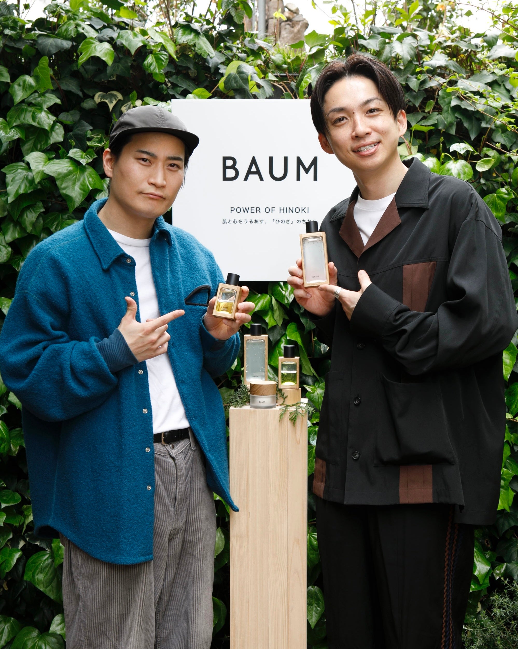 イベントには、アインシュタインの河井ゆずるさんや、きつねの大津広次さん、モデルの長谷川ミラさんをはじめ、抽選で選ばれたBAUM愛用者など多くのゲストが来場。イベント会場である「AEAJグリーンテラス」は国産ヒノキの組積構造が印象的な建築家 隈研吾氏による設計で、空間に足を踏み入れた瞬間に、清々しく美しいひのきを香りと視覚で体験。会場内ではスキンケアラインのタッチアップにより、リニューアルの進化を実感いただいた他、バリエーション豊かな精油の香りを試せる「アロマラボラトリー」でのひのきの香りレクチャー、うるおい溢れるひのき水に耳を澄ます、水琴窟のライブや、ひのきの豊かさを味わえるフィンガーフードやドリンクが提供され、五感でひのきをお楽しみいただきました。