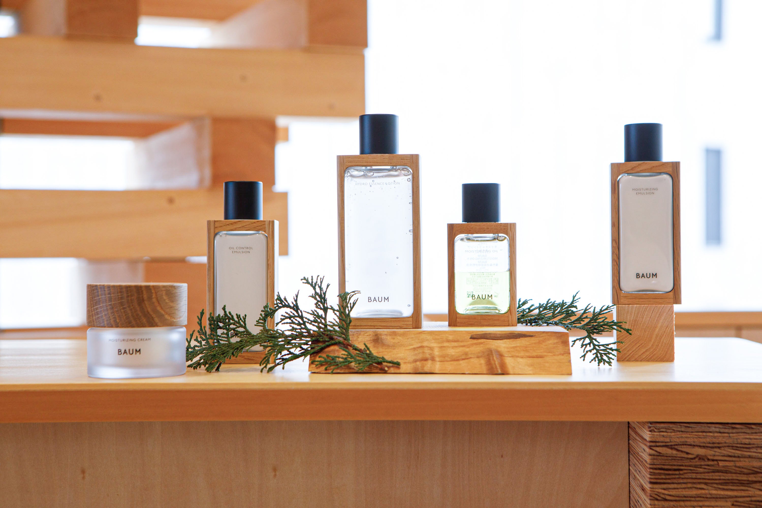 BAUMは誕生以来、自然界における循環の象徴であり、永遠の時を生きる樹木に着目し、中味処方、パッケージデザイン、ブランド活動において、樹木との心地よい時間を提供することを願い、樹木が秘める可能性について日々研究を続けてきました。ナチュラルスキンケアを好み、現在だけではなく、未来に続くすこやかな肌を育みたいと願う方々の気持ちに寄り添いたい、という発想から、生命力・長寿力にすぐれ、その香りで人々を癒す類いまれなるちからを秘めた樹木、「ひのき*」に着目。まるで森林浴をしているかのような気持ちで肌と心を心地よくととのえる