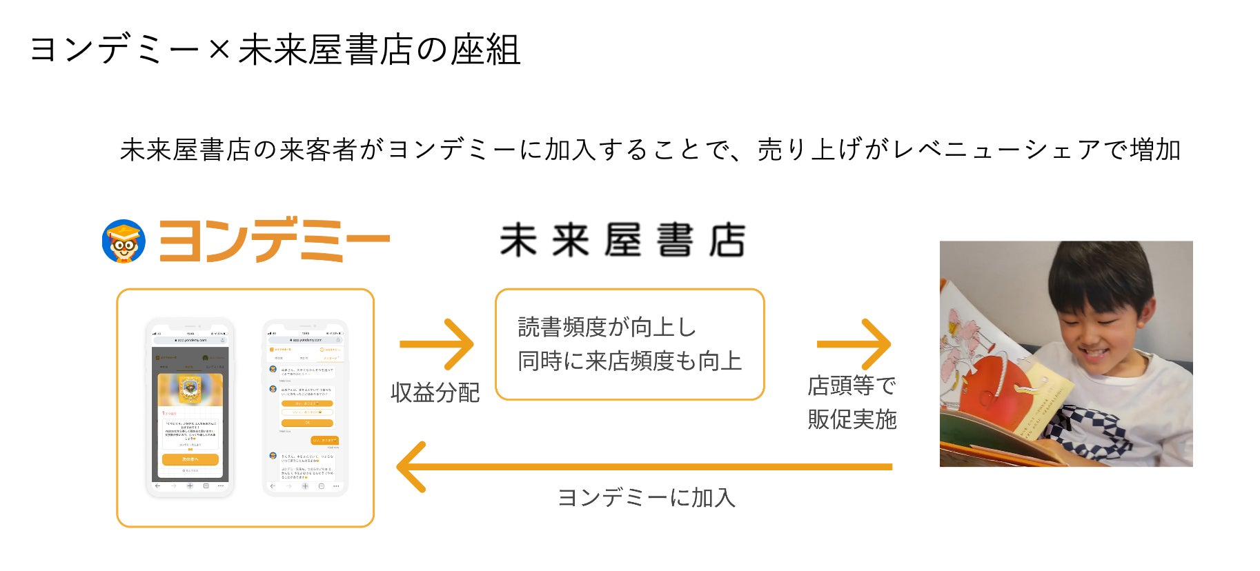 このような状況を踏まえ、Yondemyと未来屋書店は、子どもたちの読書文化を育む取り組みを通じて、書店業界の新たな顧客層の獲得と収益化を目指します。