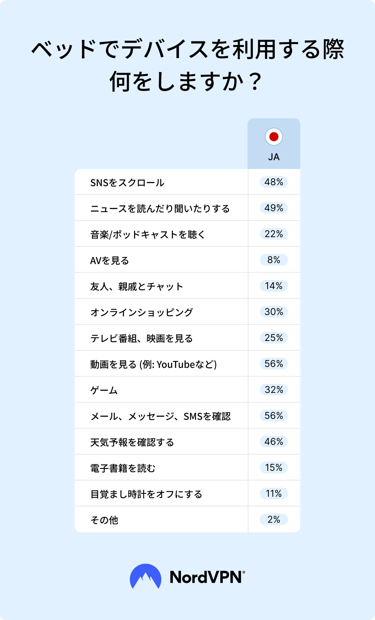 NordVPN調査:日本人の80%が就寝時にデバイスを使用