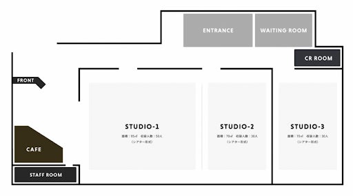 さまざまな用途に対応した3種類のスタジオは、展示会やオフラインイベントに留まらず、ウェビナーや配信ライブなど多目的にご利用いただけます。
