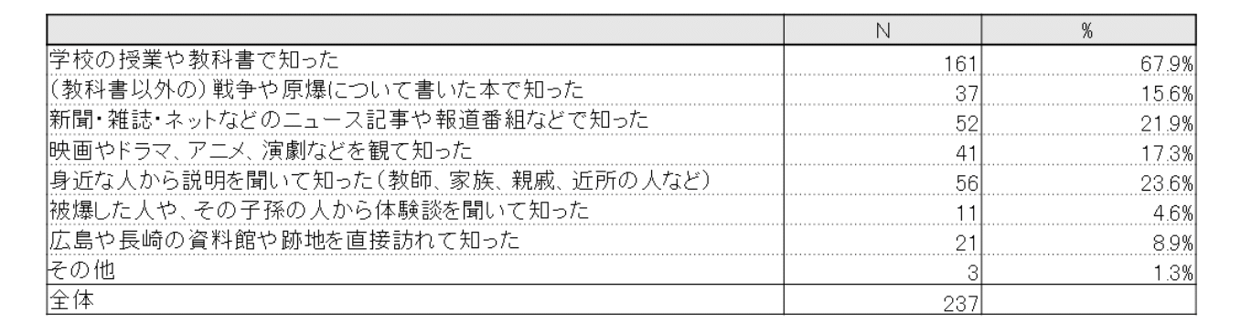 どのようにして原爆のことを知りましたか。(複数回答)
