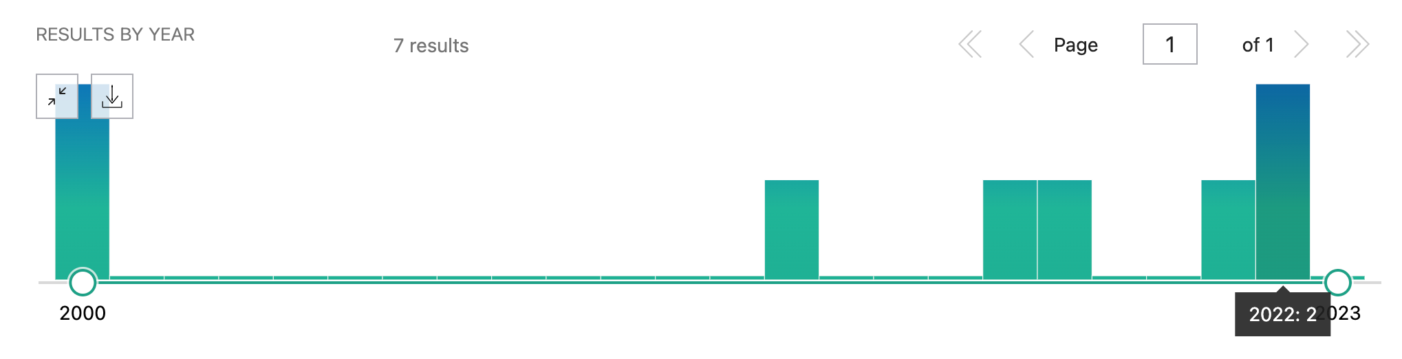 HHCHの研究論文数の推移。2023年11月時点では計7本。