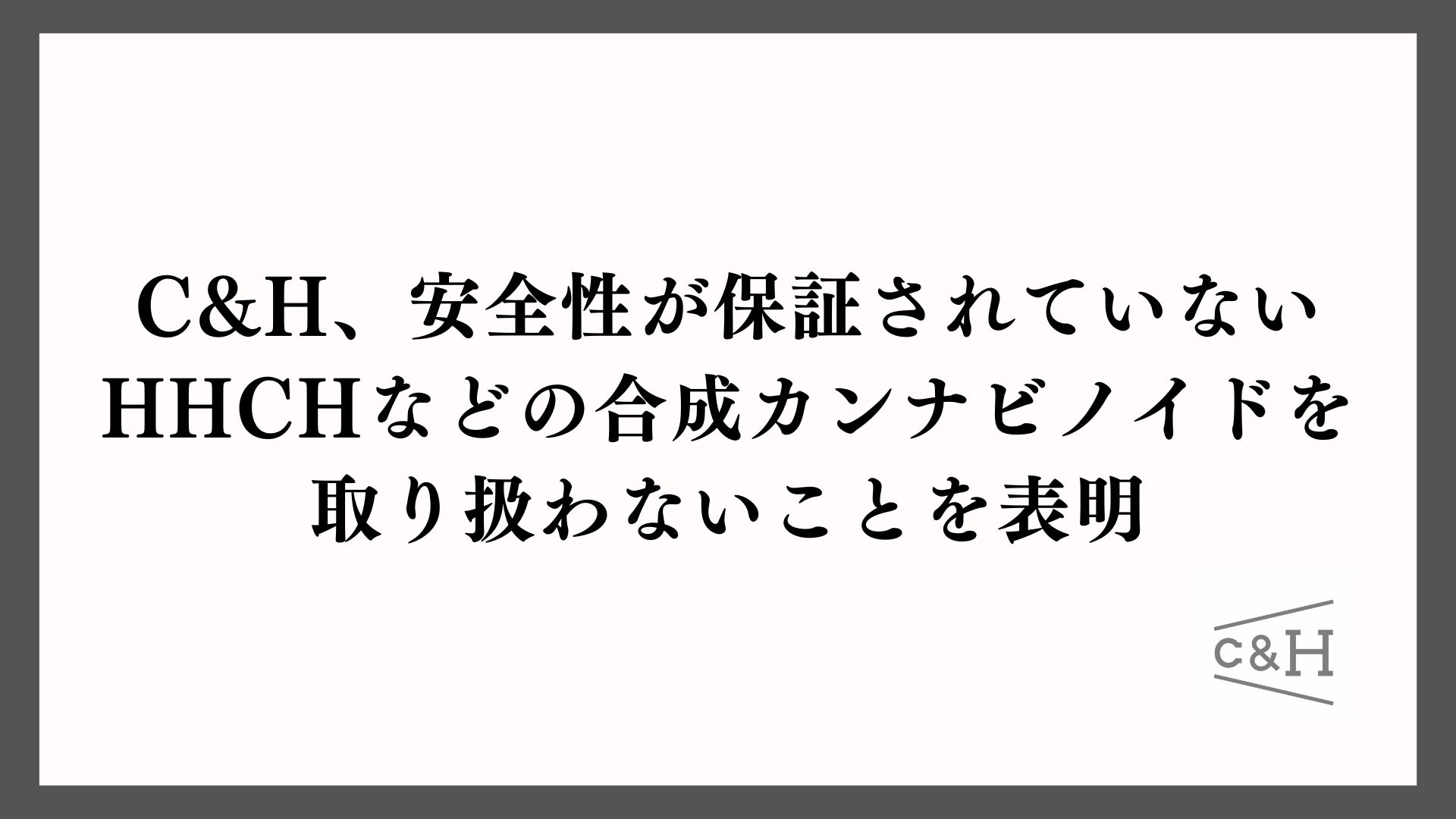 CBD・ヘンプの研究機関を持つC&H、安全性が保証されていないHHCHなどの合成カンナビノイドを取り扱わないことを表明