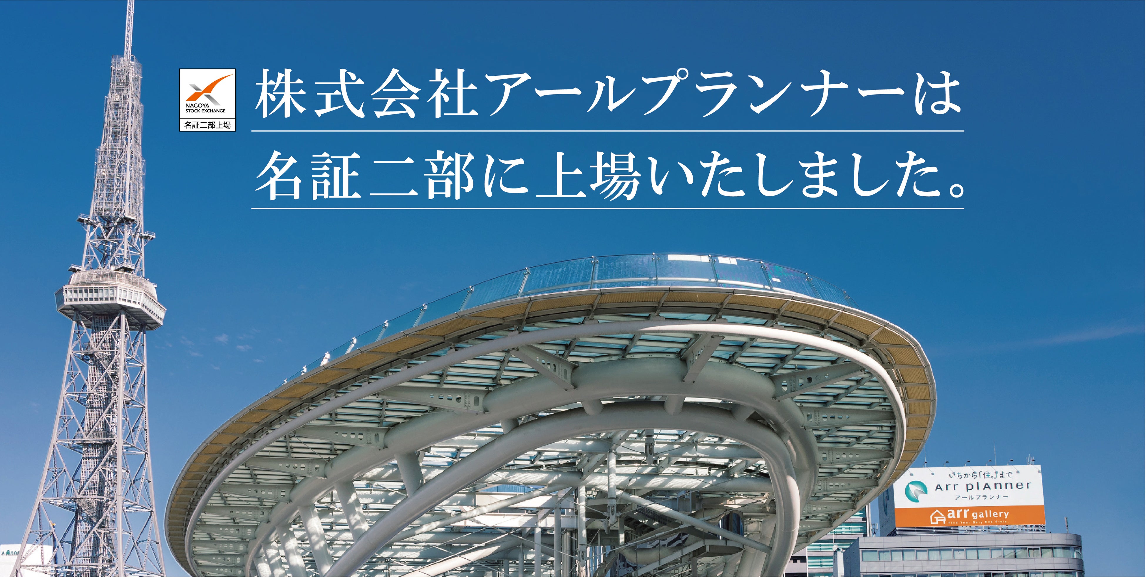 株式会社アールプランナー(本社:名古屋市東区、代表取締役社長:梢 政樹、以下「当社」)は、本日、名古屋証券取引所市場第二部へ上場いたしましたので、お知らせいたします。