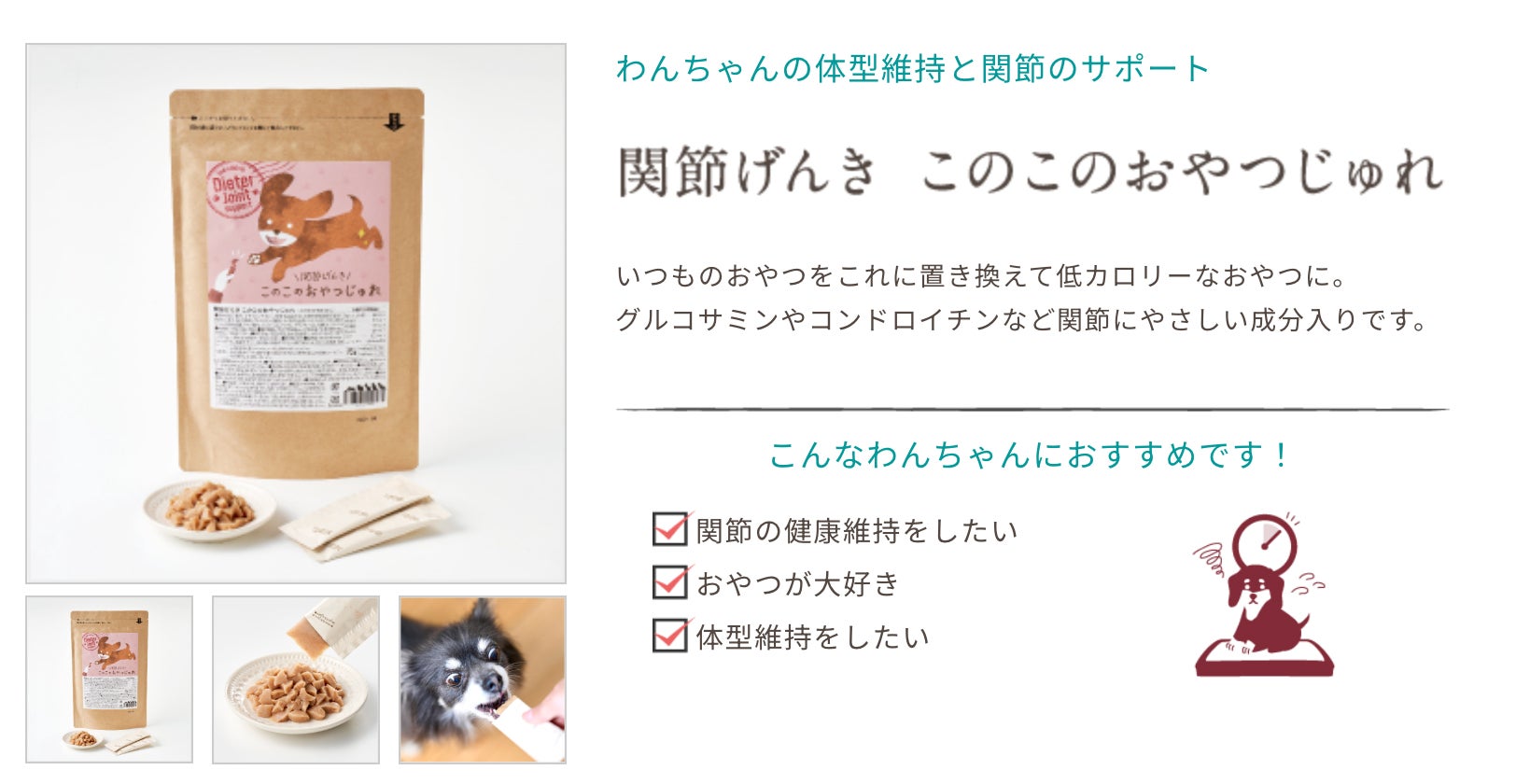 関節げんき このこのおやつじゅれ:https://shop.konokototomoni.com/shop/products/kkojhp01/