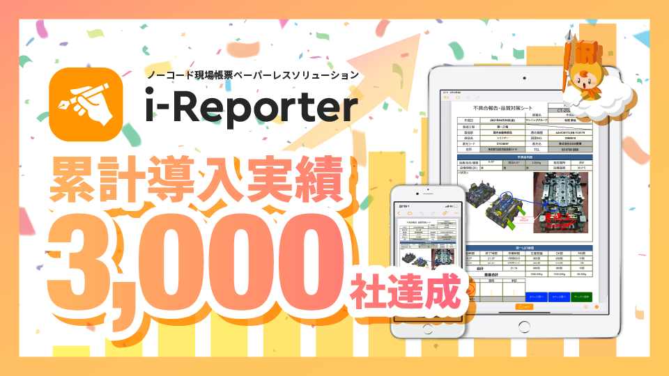 ノーコード現場帳票ペーパーレスソリューション「i-Reporter」が、導入実績 3,000社を達成