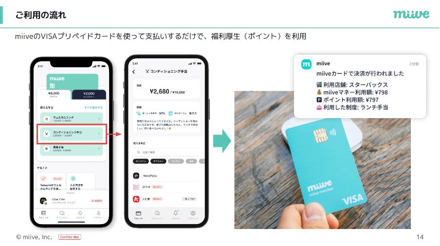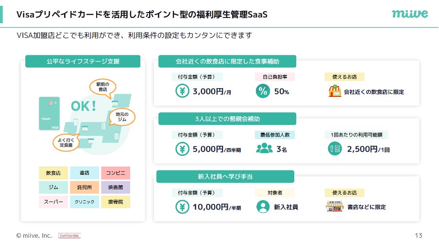 ◼︎miiveの提供価値|VISAカード加盟店が全て対象になる福利厚生制度を独自に設計