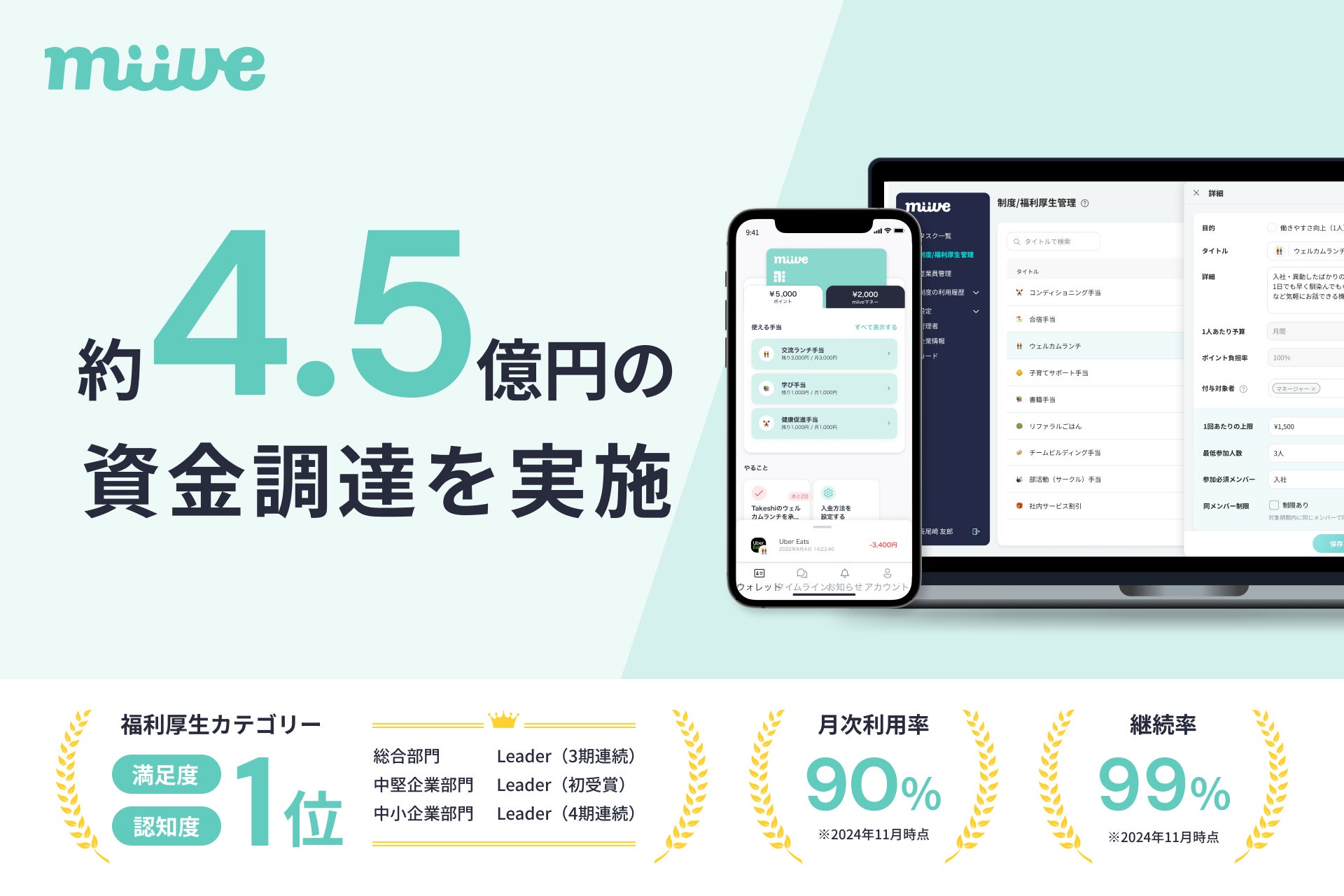 人的投資・実質手取りUPとして注目の福利厚生、柔軟な制度運用を容易にする「miive」が約4.5億円の資金調達
