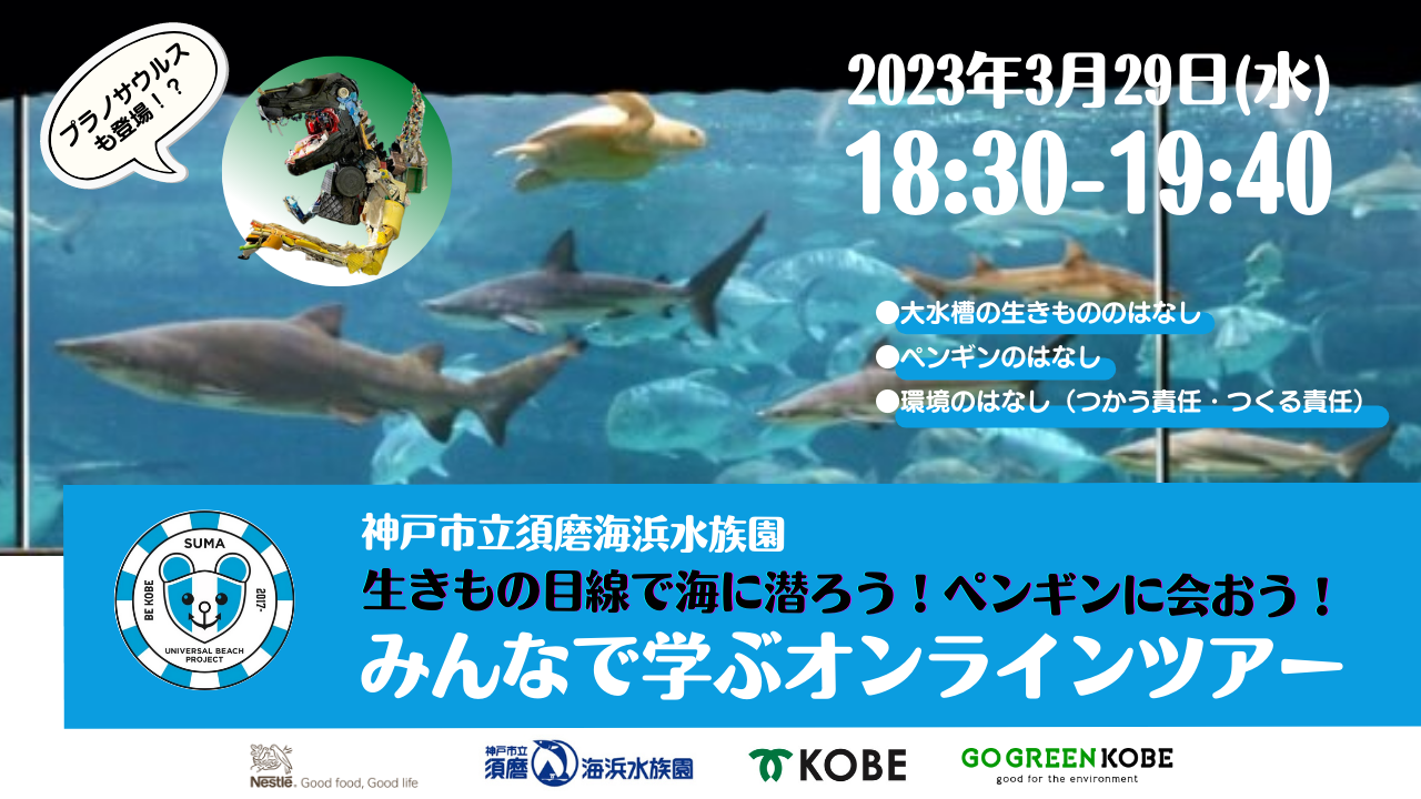 ネスレ日本株式会社、NPO法人須磨ユニバーサルビーチプロジェクトは、神戸市立須磨海浜水族園の協力を得て、「~生きもの目線で海にもぐろう!ペンギンに会おう!~ みんなで学ぶオンラインツアー in 須磨海浜水族園」を開催いたします。