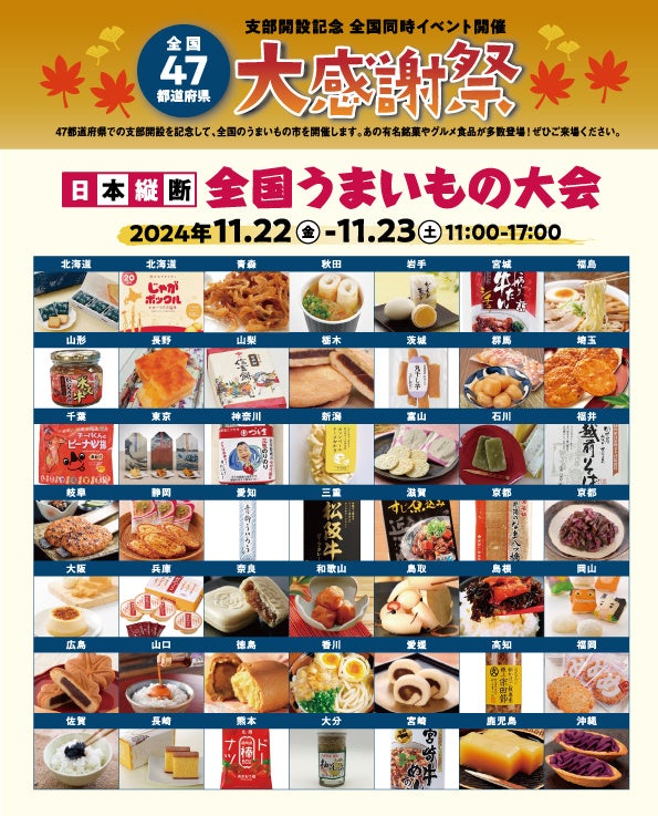 47都道府県での支部開設を記念して、有名グルメを揃えた全国うまいもの市を開催いたします