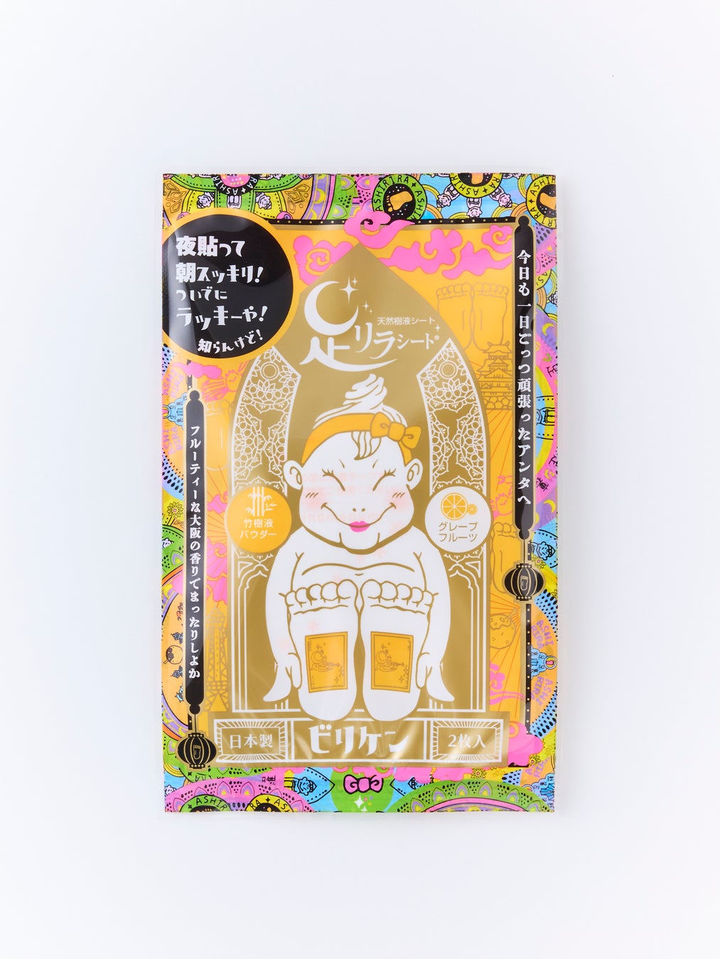 そこで、毎日頑張る足元をケアする「足リラシート」とコラボレーションし、足の裏に貼るだけでリラックスできる「足リラシート」とビリケンさんの持つ「ご利益」の組み合わせが、疲れた足をリフレッシュさせるとともに足元から幸せな気持ちになる特別な商品が完成しました。