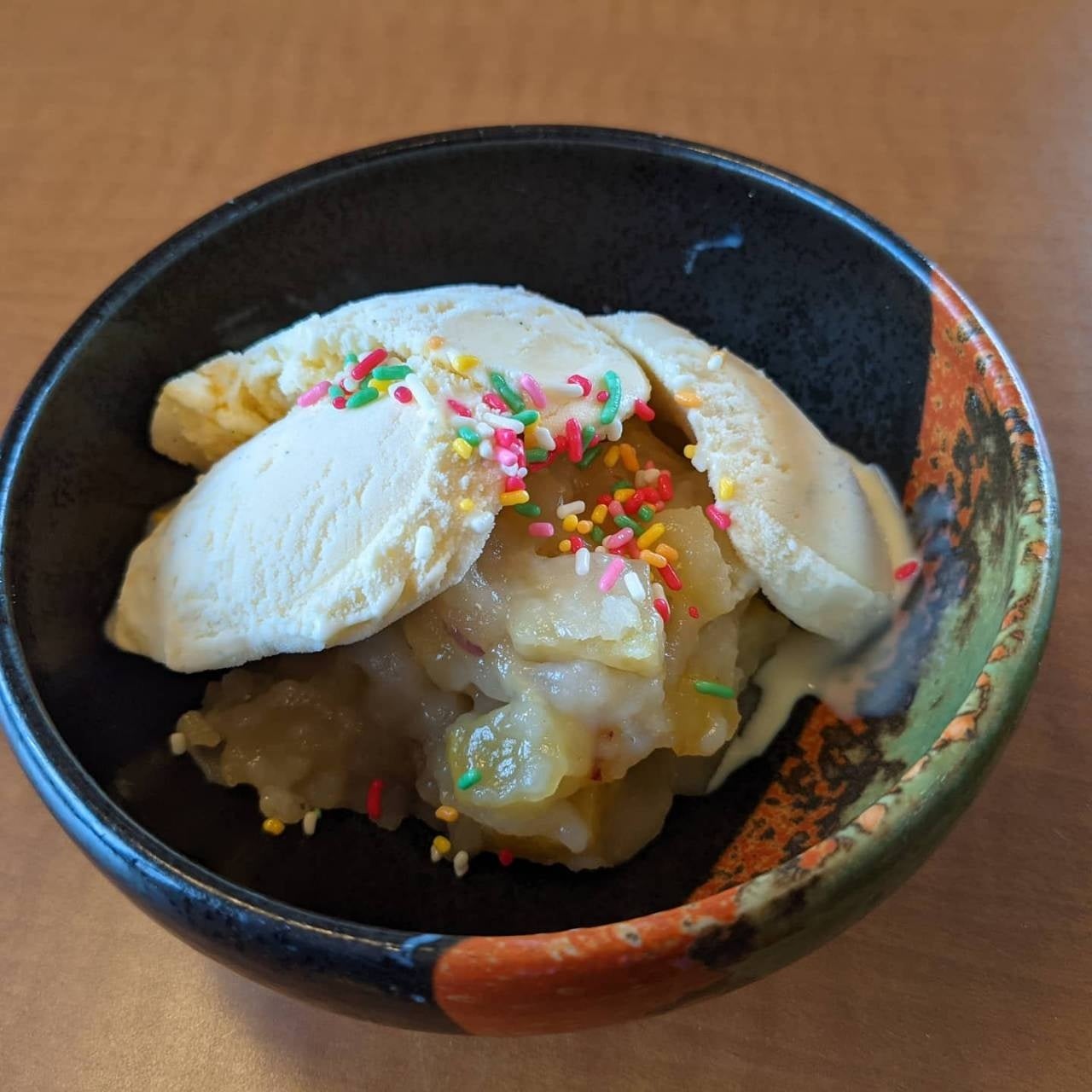 鬼まんじゅうのホクホク感とバニラアイスの冷たさが美味しさ抜群。