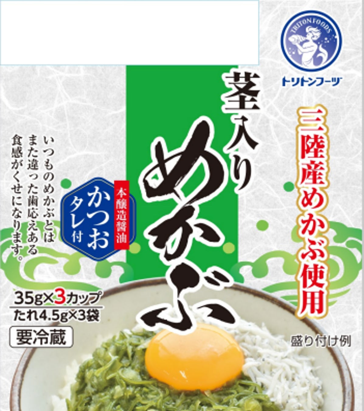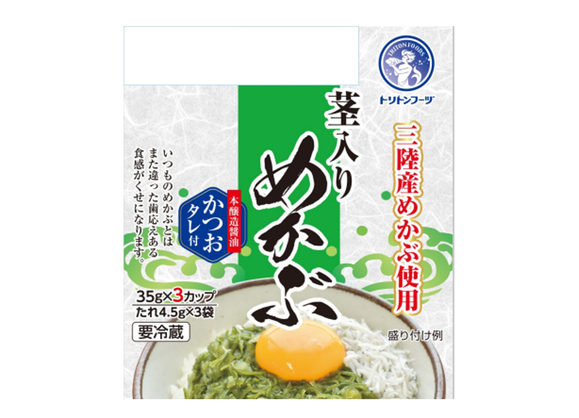 株式会社トリトンフーヅ(本社:熊本県宇土市城塚町169-1、代表取締役社長:髙木 良樹)は、新商品「三陸産茎入りめかぶ(味付・かつおタレ別) 」を7月15日より全国のスーパーマーケットなどで順次発売いたします。